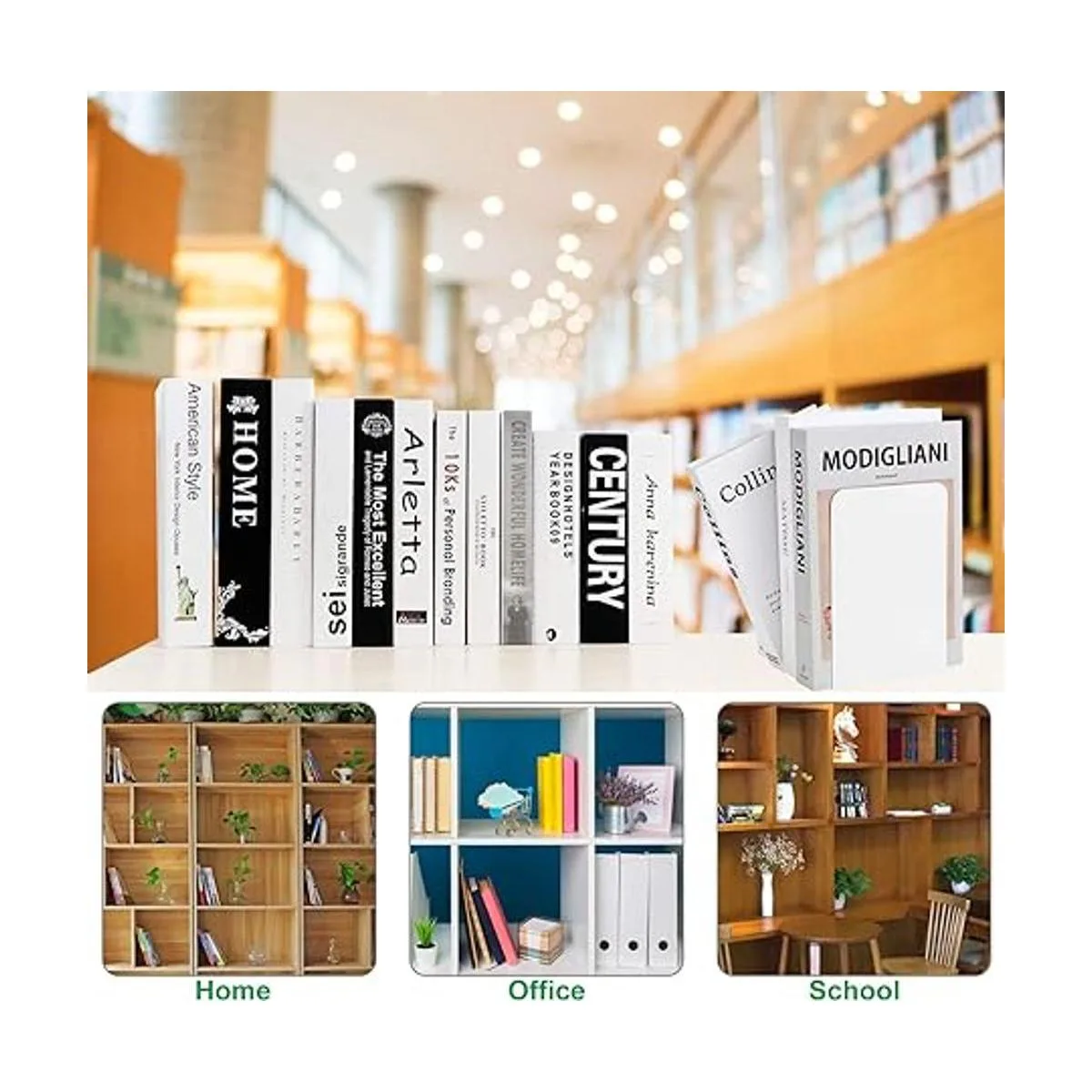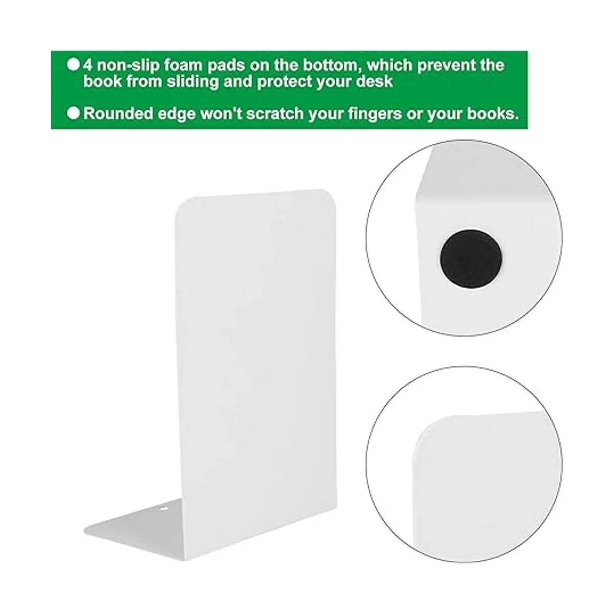Extremo de libro resistente: los extremos de libro blancos están hechos de material de hierro metálico con superficie electrostática pintada en aerosol, fuerte y duradero, no se deforma fácilmente. Los sujetalibros también pueden sostener tus libros pesados de forma ordenada y vertical, y son difíciles de doblar.