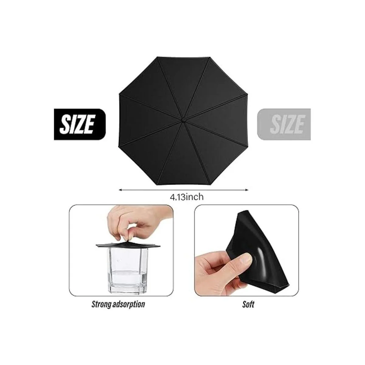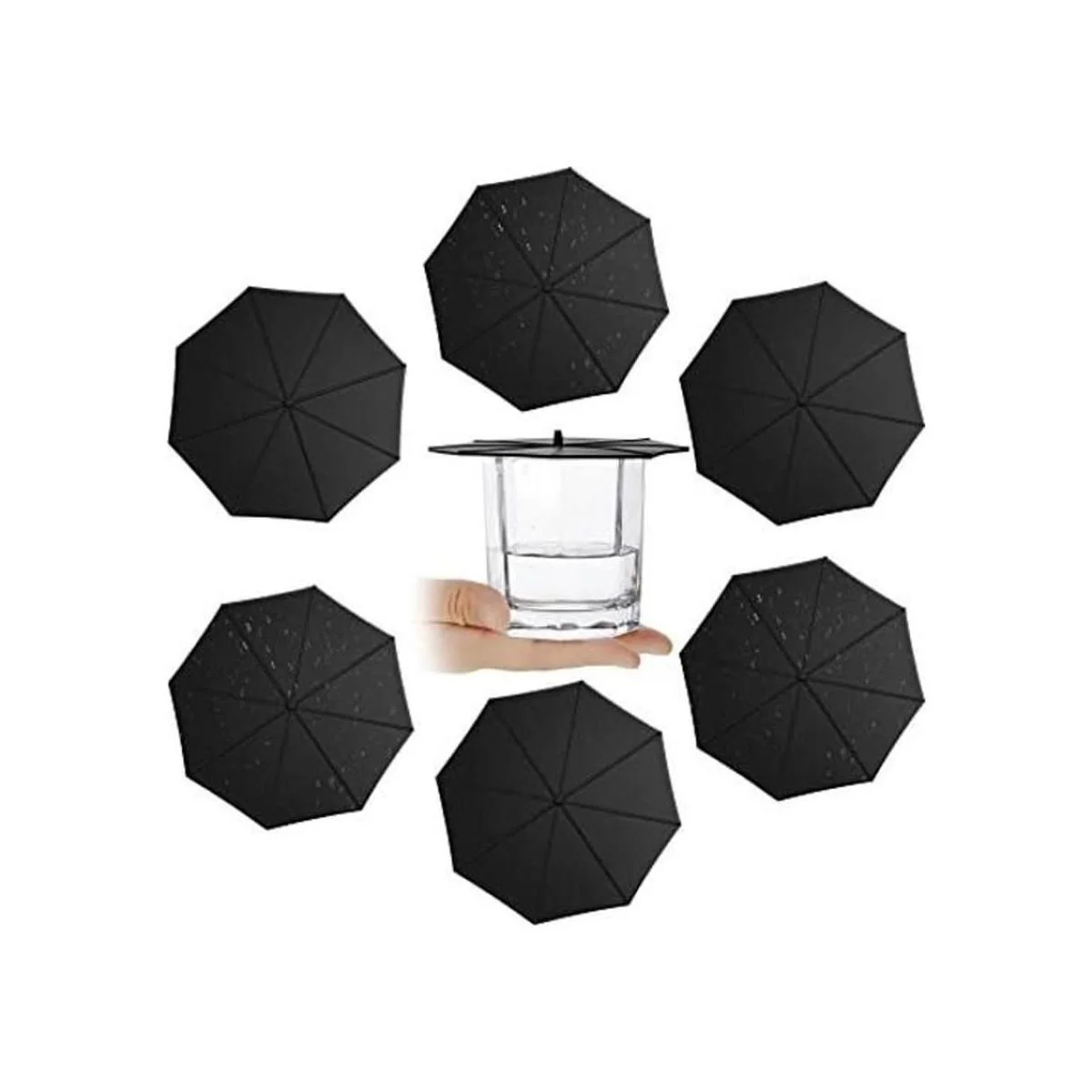 6 tapas de silicona para tazas de paraguas, tapas de vaso de silicona, antipolvo, tapas de tapa de sellado de ventosa, para mantener la bebida caliente o fría negro