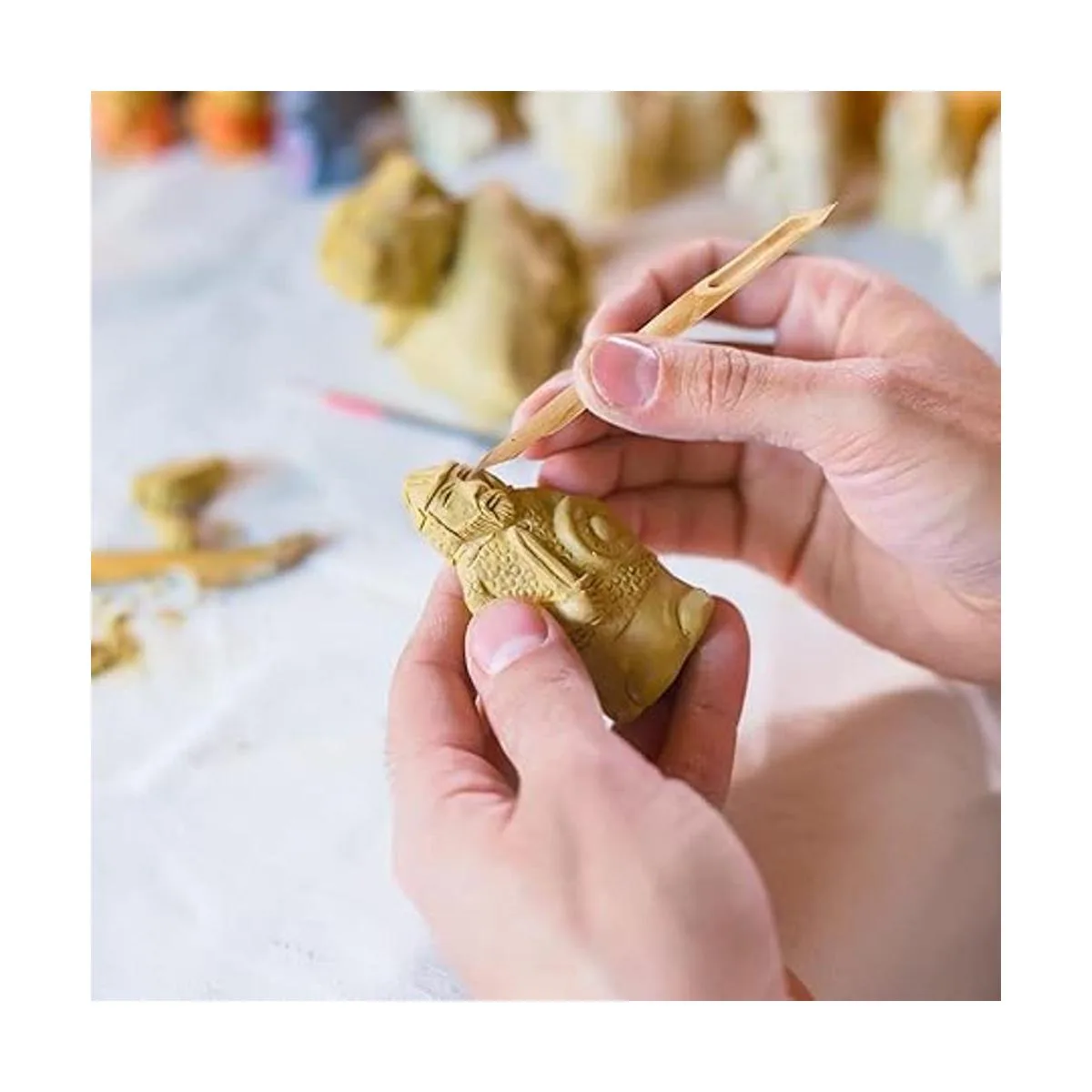 Contenido del paquete: hay 6 piezas de bolígrafos de doble cabeza de bambú en este paquete, que son útiles herramientas de moldeado de cerámica de polímero, cantidad suficiente para usar y reemplazar en la vida cotidiana