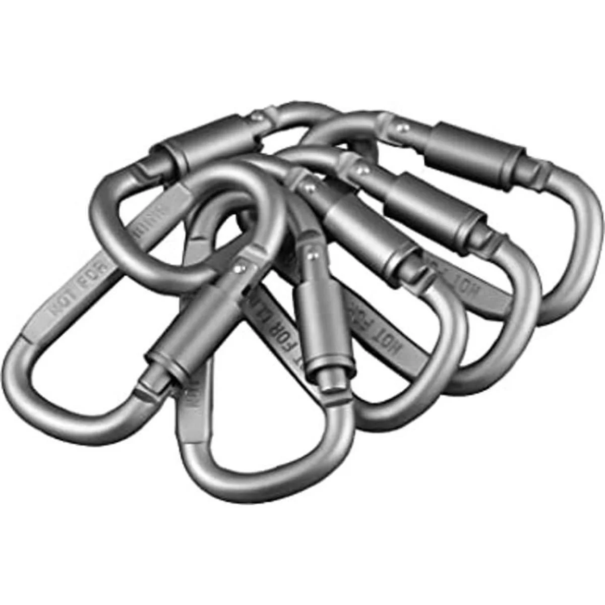 6 unidades, gris, cada mosquetón mide 3.1 x 1.6 in aproximadamente. Su diseño compacto hace que sea práctico y fácil de llevar.