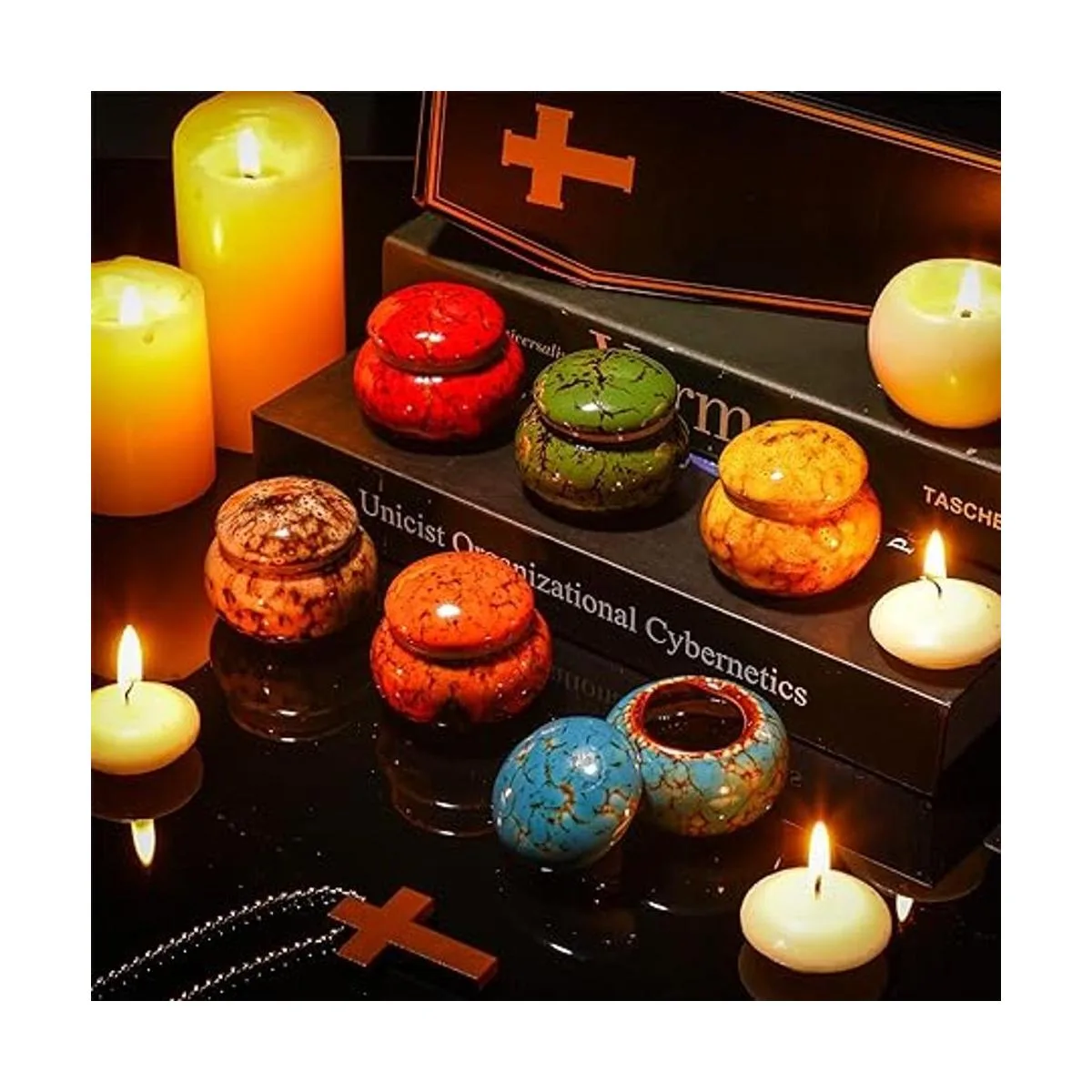 6 urnas pequeñas para cenizas humanas, mini urnas conmemorativas de recuerdo de 1.6 x 2 pulgadas cúbicas para cenizas, hermosa urna de cerámica de colores surtidos para mascotas, hogar, oficina, decoración de cremación