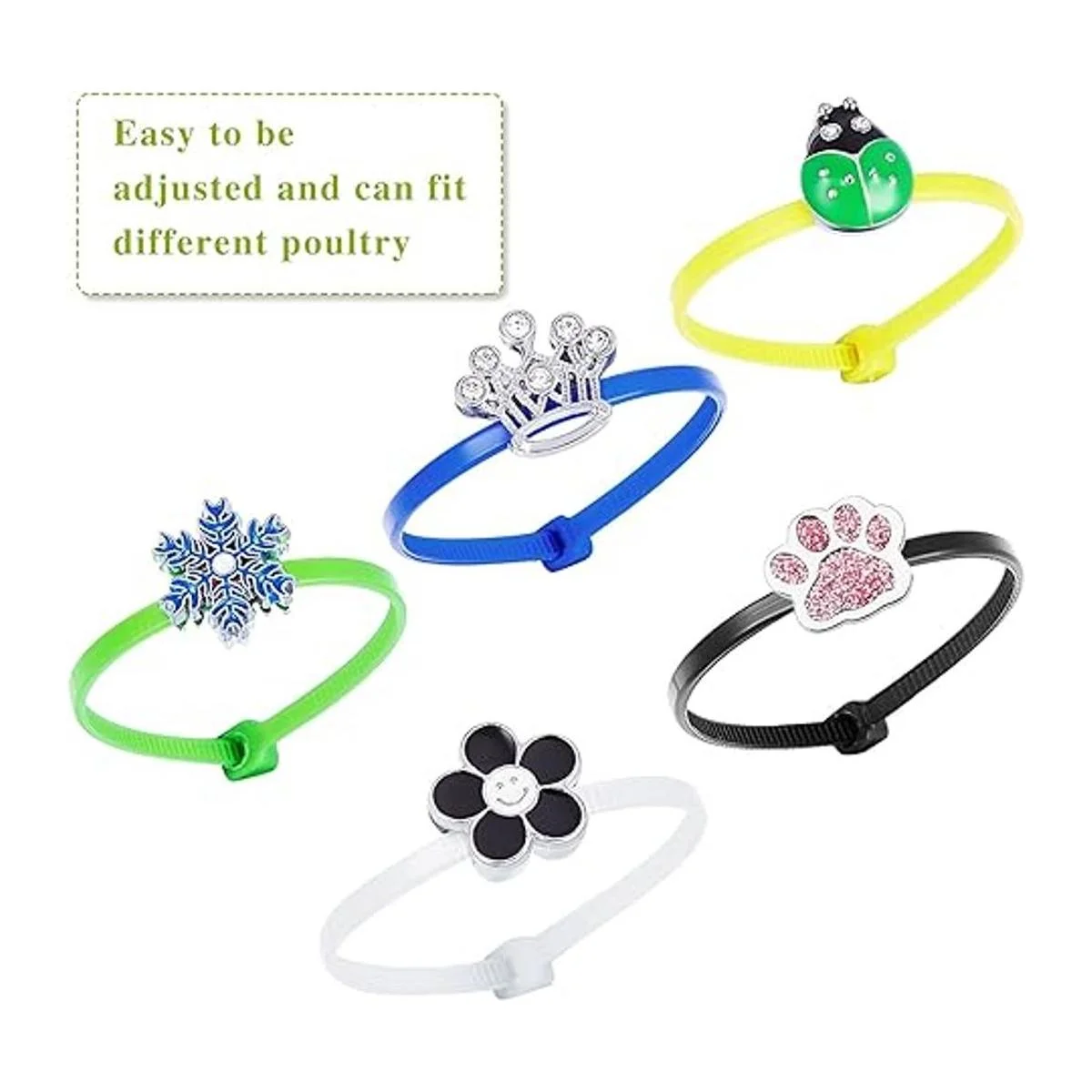 Tamaño ajustable: estas bandas de identificación de pollo miden aproximadamente 5.9 in de longitud, se pueden ajustar fácilmente para adaptarse a diferentes tamaños de aves de corral y pájaros; también son cómodos de llevar y quitar, no se aflojan fácilmente hasta que las quites.