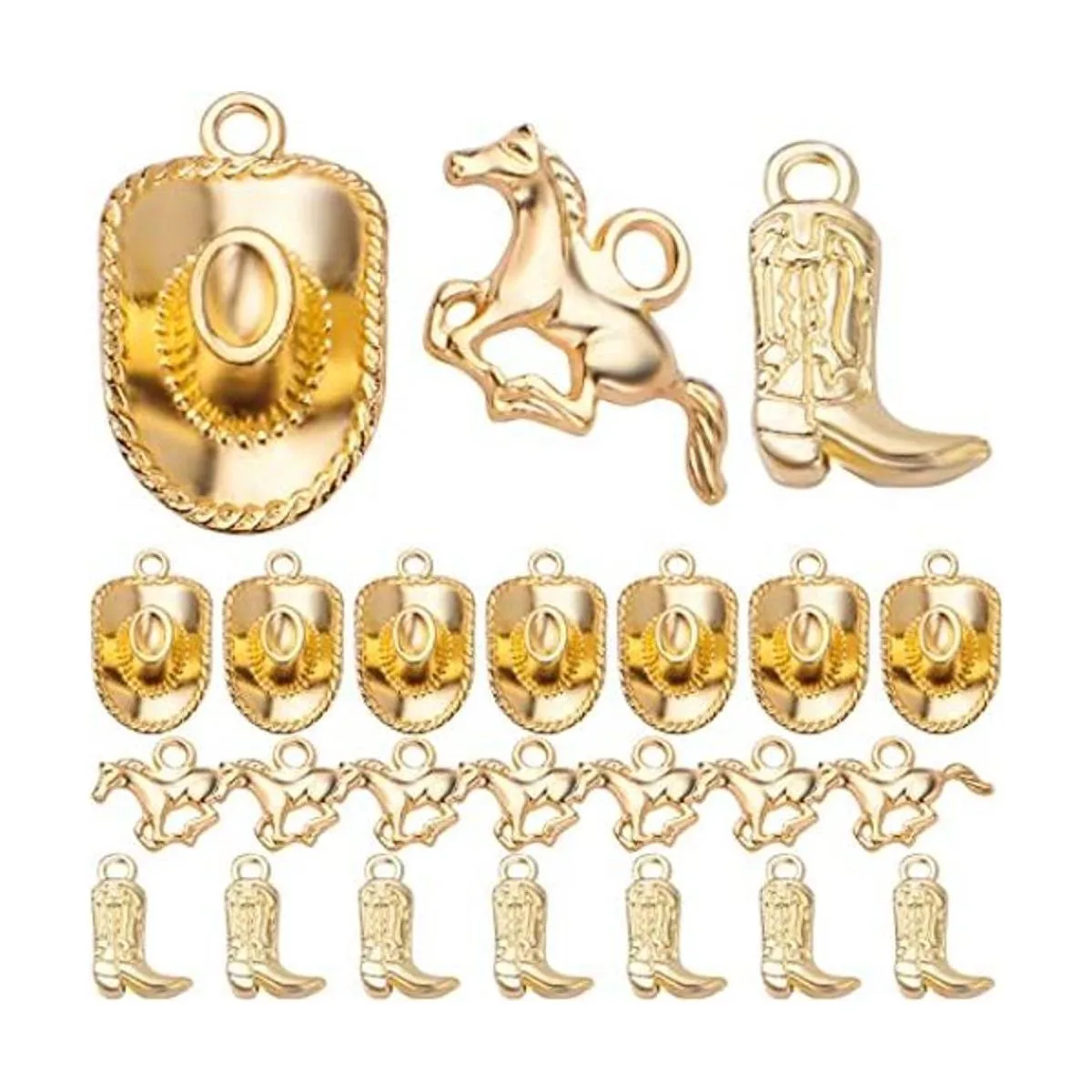 60 colgantes chapados en oro con temática occidental de aleación tibetana para botas de caballo, colgantes para manualidades, pendientes, pulseras, collares, joyas, 3 estilos.
