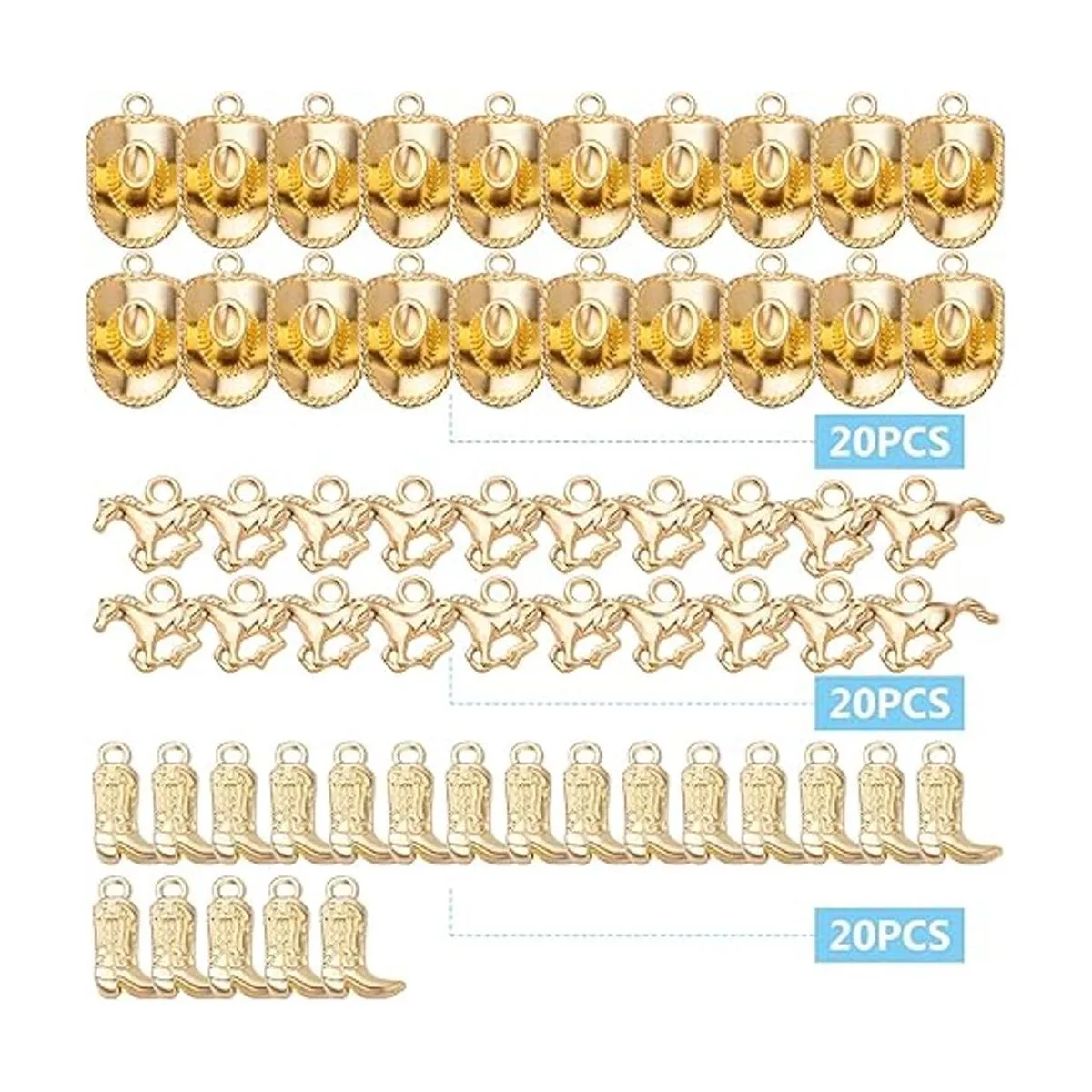 Cantidad suficiente: el paquete viene con 60 abalorios de vaquero occidental en total, 3 estilos, 20 piezas para cada estilo. Diferentes estilos te proporcionarán más opciones a juego para hacer joyas