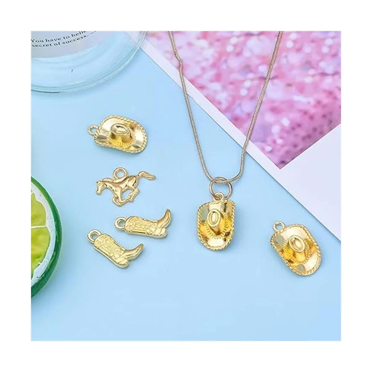 Abalorios con temática de vaquero: los abalorios están diseñados con temática de vaquero occidental, incluyendo sombrero de vaquero, botas de vaquero y caballo corriendo. Las manualidades con estos abalorios mostrarán tus estilos personales