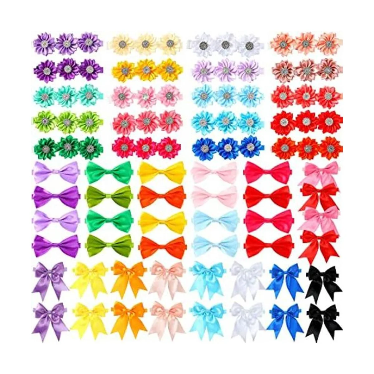 El paquete incluye: recibirás 60 piezas de diferentes estilos y colores de collares de perro con pajarita, 3 estilos diferentes son elegantes y encantadores, lazo simple y elegante y hermosa decoración de flores de diamantes de imitación, rosa, rojo, morado, amarillo, verde, negro, azul y otros colores son suficientes para que elijas y combines, número suficiente para satisfacer las decoraciones diarias de tu mascota y las necesidades de reemplazo