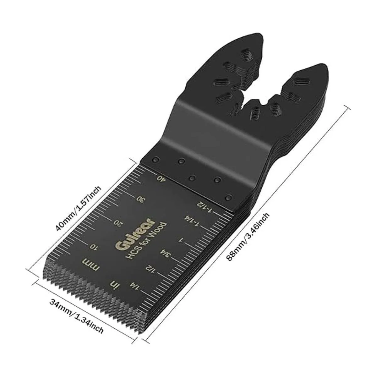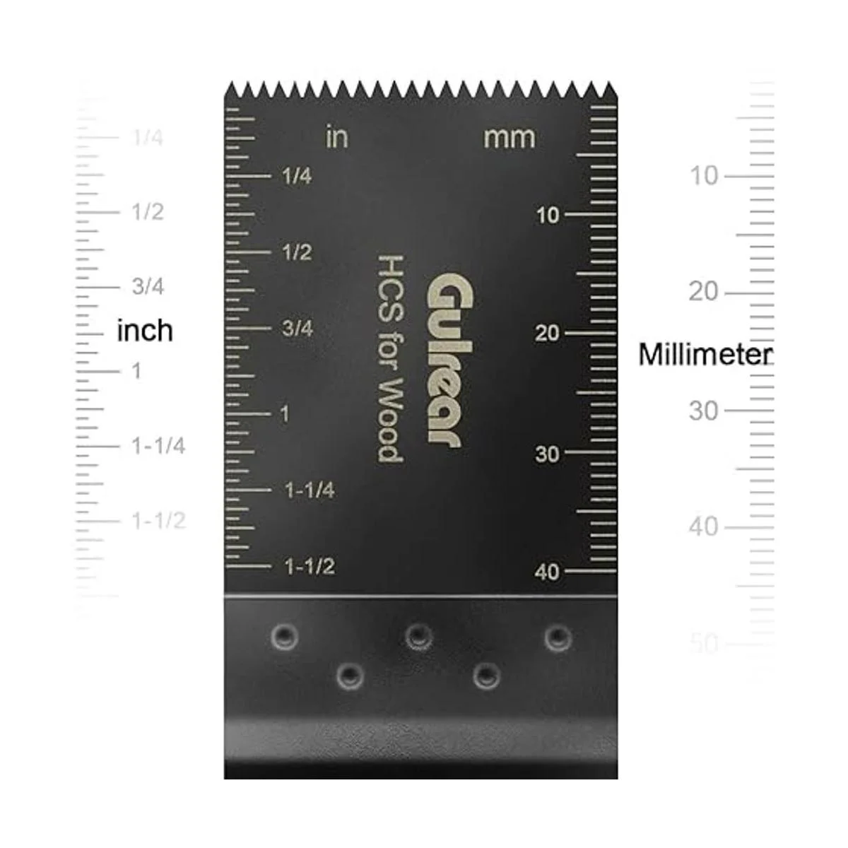 Diseño de corte de precisión: cuchillas oscilantes de potencia marcadores de longitud integrados en dos lados, un lado es pulgadas y el otro es centímetro, asegurando que puedas obtener cortes precisos fácil y rápido mientras trabajas con hojas de sierra multiherramienta. Estas cuchillas de madera para herramientas oscilantes están fabricadas con un borde de corte duradero que resiste el desgaste y corta rápidamente.