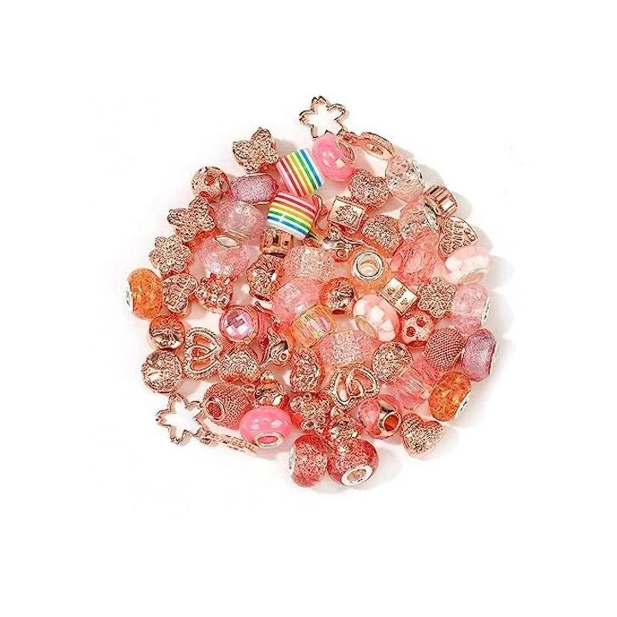 60 cuentas europeas de diamantes de imitación de cuentas espaciadoras, cuentas de resina de cristal, surtidos de cuentas de vidrio de metal con agujero grande para pulseras, collares, hacer joyas, manualidades de bricolaje rosa