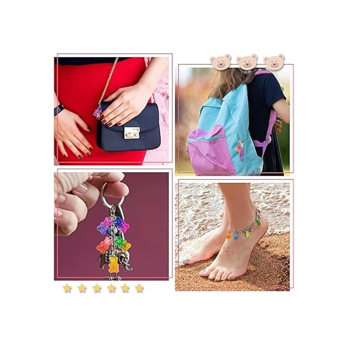 Amplias aplicaciones: cada oso tiene un lazo de metal en la parte superior para que puedas unirlos. También se pueden utilizar como accesorios para collares, pulseras, tobilleras, aretes, llaveros, cadenas de teléfono inteligente. Puedes pegarlos a la superficie de algo que quieras decorar.