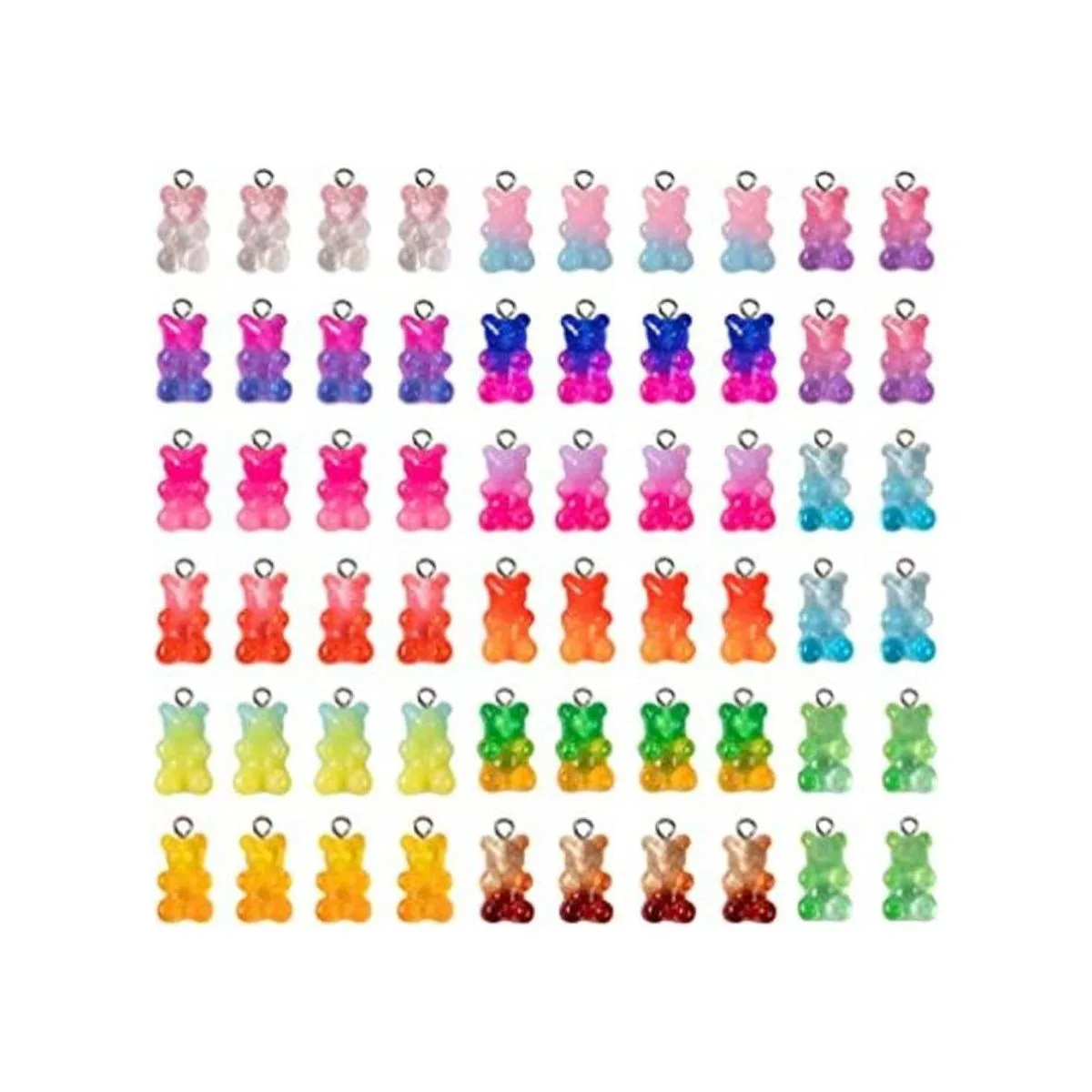 Información del paquete: hay 60 dijes de oso de resina en 15 colores degradados en este paquete. Estos colores degradados brillantes, claros a oscuros pueden añadir más color y diversión a tu vida y satisfacer totalmente la mayoría de tus necesidades de combinación en la vida diaria.
