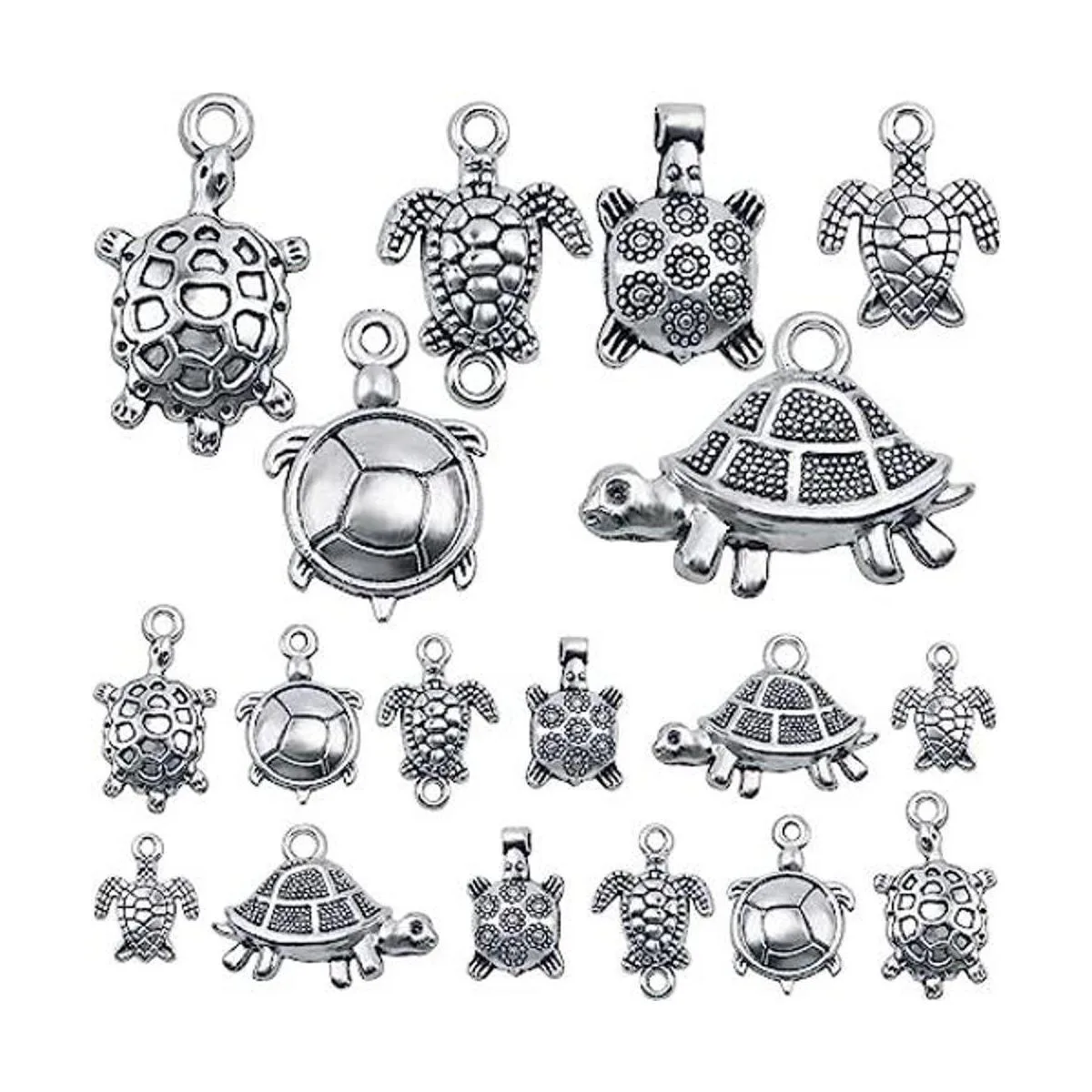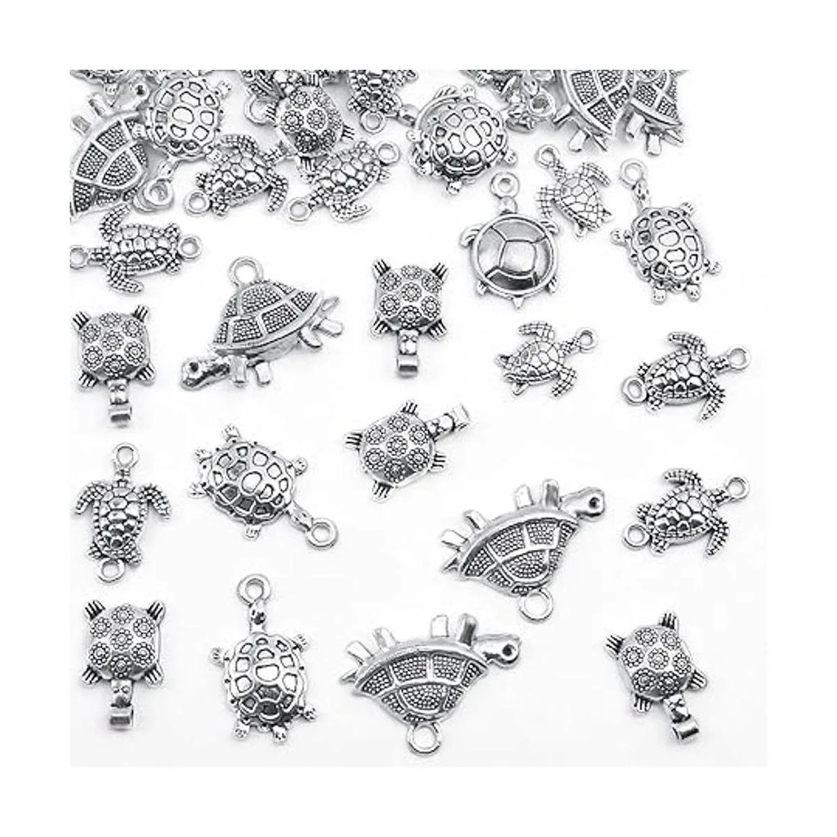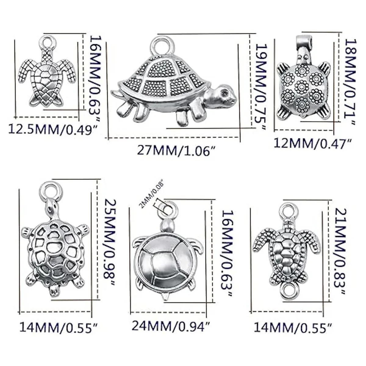 Contenido del paquete: el paquete viene con 60 colgantes de tortuga marina de plata antigua en 6 estilos, cada estilo 10 piezas, suficientes estilos te proporcionarán más opciones a juego para manualidades de joyería.