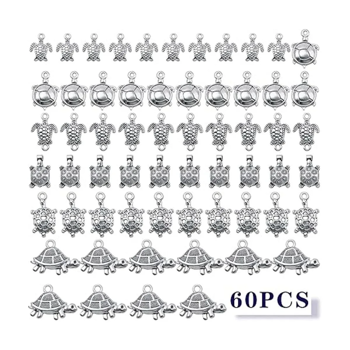 60 dijes tibetanos de tortuga marina de plata antigua tibetana de aleación vintage de tortuga de animales del océano para bricolaje, collares, pulseras, joyería, manualidades, decoración, 6 estilos