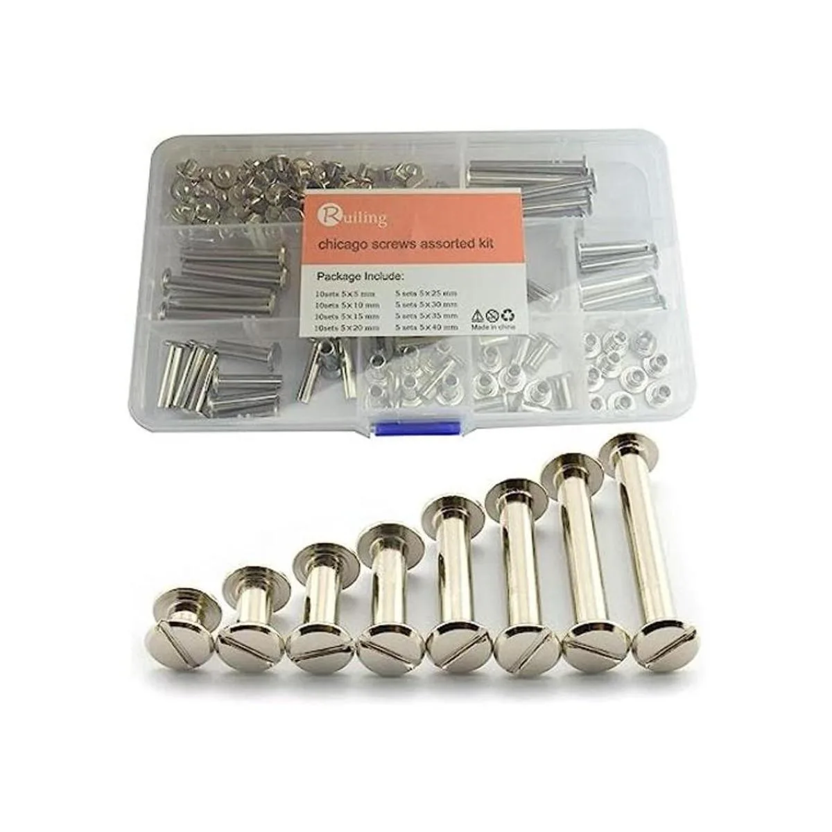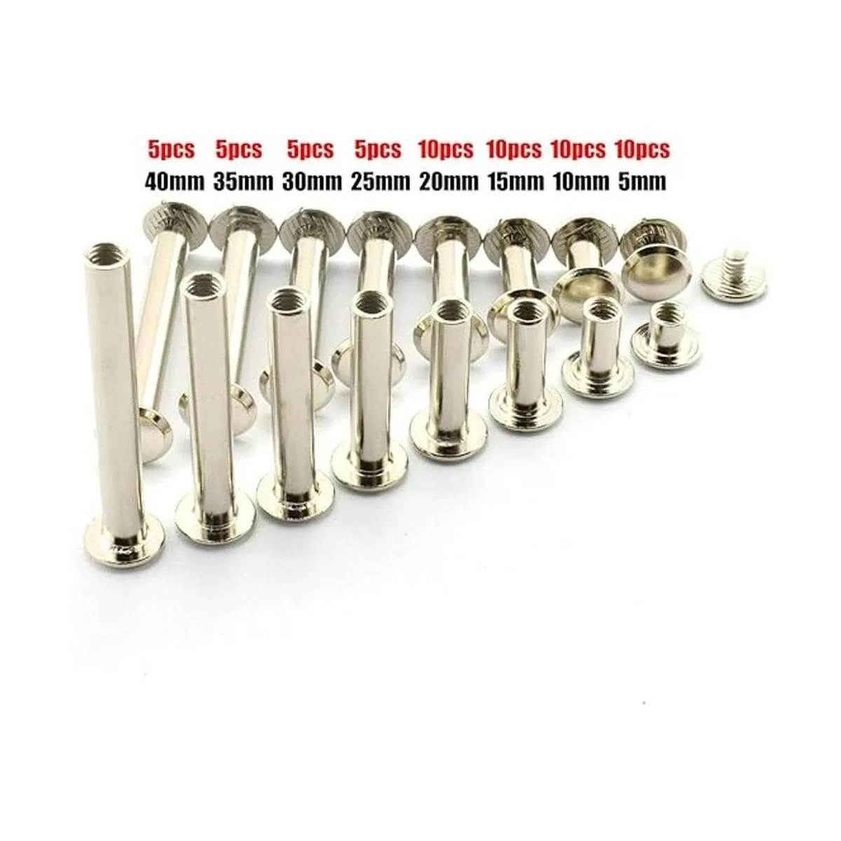 60 juegos de tornillos de Chicago de plata surtido kit tornillos postes de metal accesorios clavo remache Chicago botón para bricolaje decoración de cuero encuadernación ranurado cabeza plana perno tornillo M5x 51015202530351.575 in