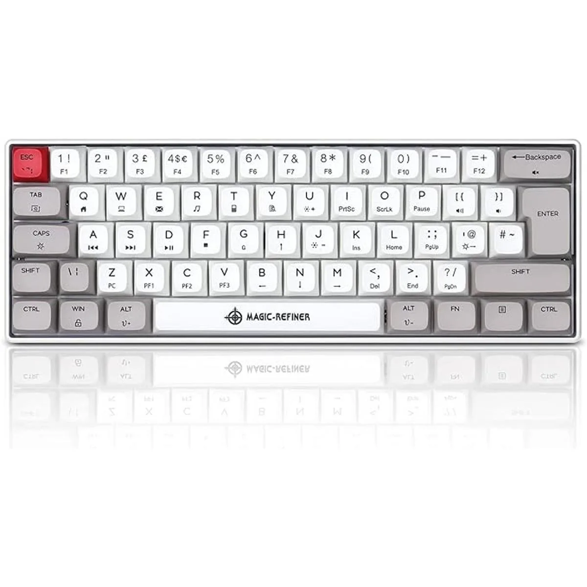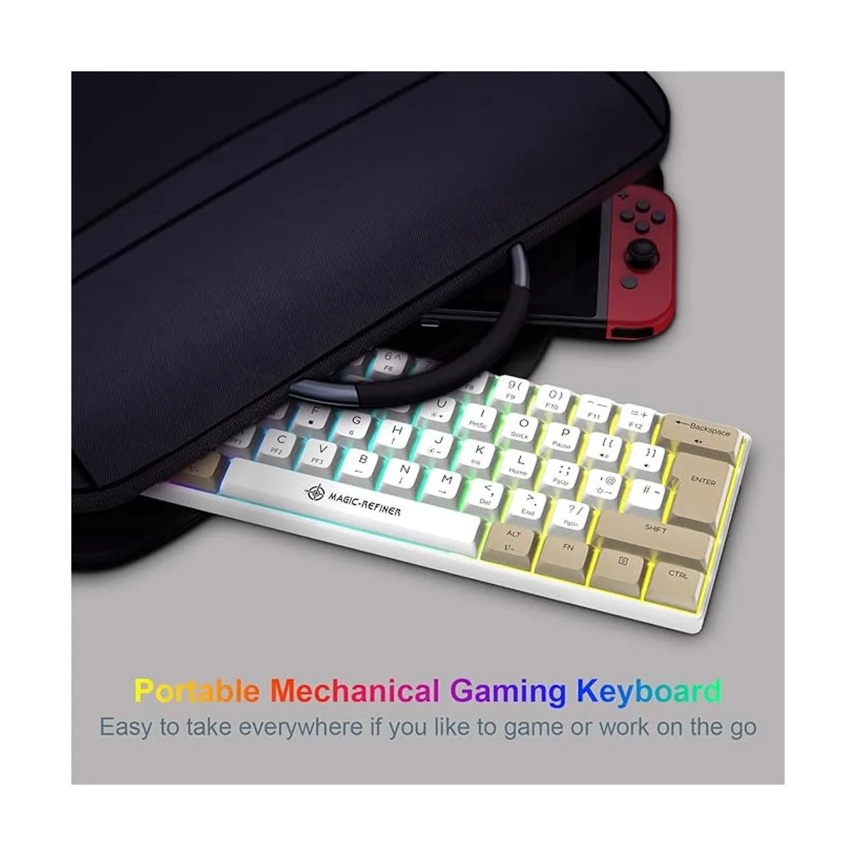 60 Percent Keyboard: MK21 62 key gaming keyboard has a very small and compact design. Refreshing style with distinctive colorblock design and keycap shape. It can not only save your desk space, but also for gaming or work very well.