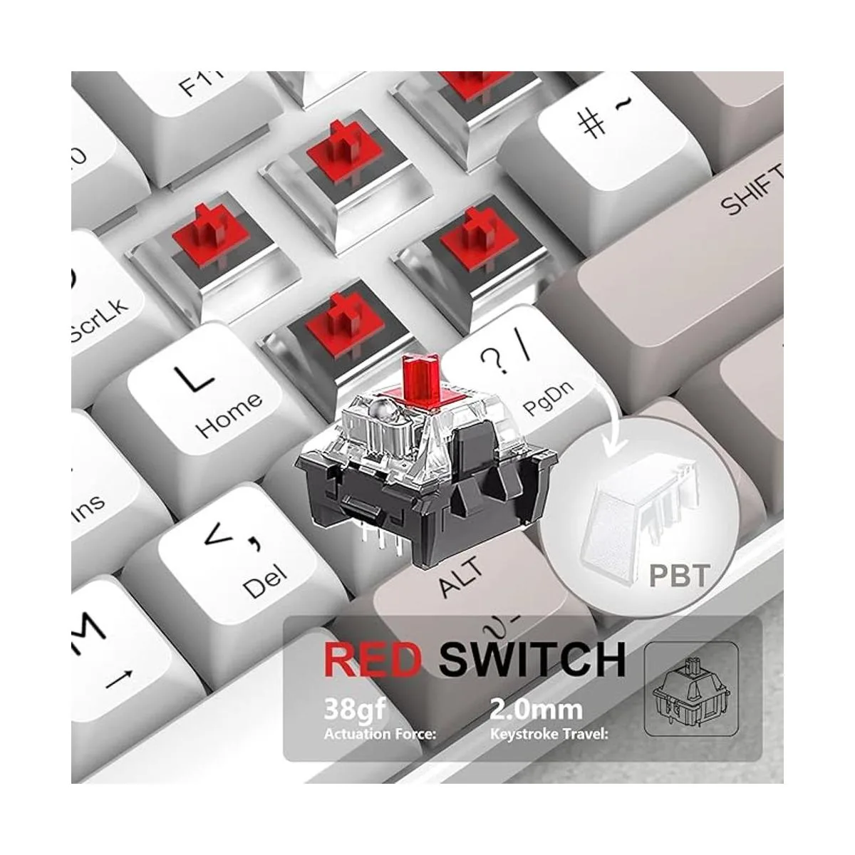 60 Mechanical Keyboard, Dye Sublimation PBT Keycap RGB Backlit 62 Key UltraCompact Gaming Keyboard with Red Switches for PCMac Gamer