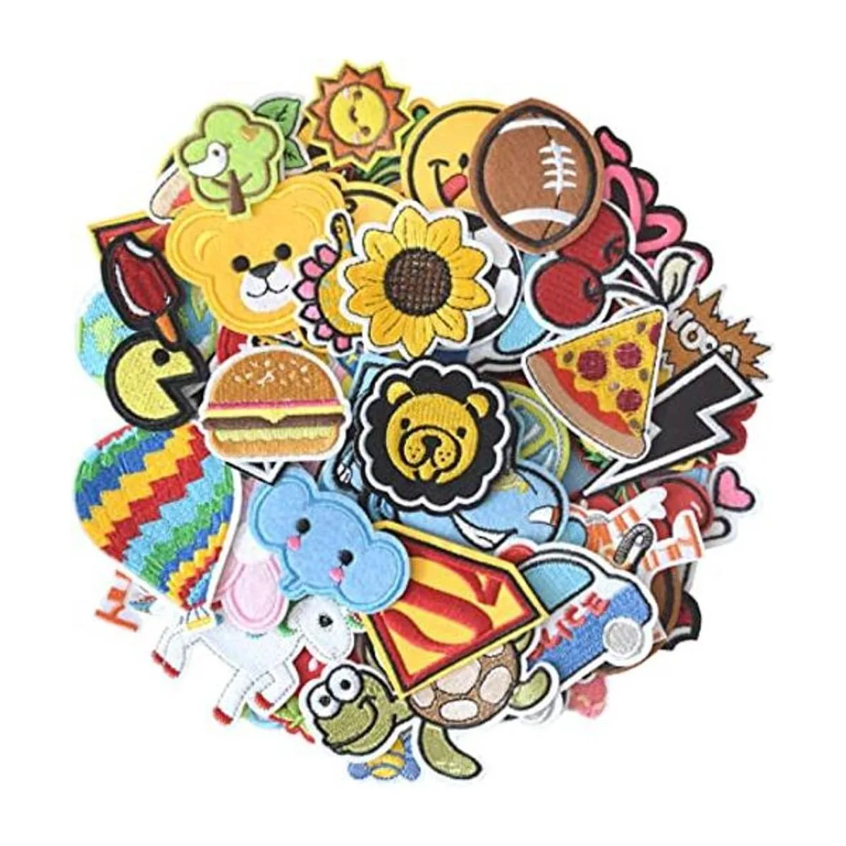 Surtido con 60 parches aleatorios. Cada parche tiene un pegamento adhesivo duradero en la parte posterior para transferencias de planchado o coser en telas