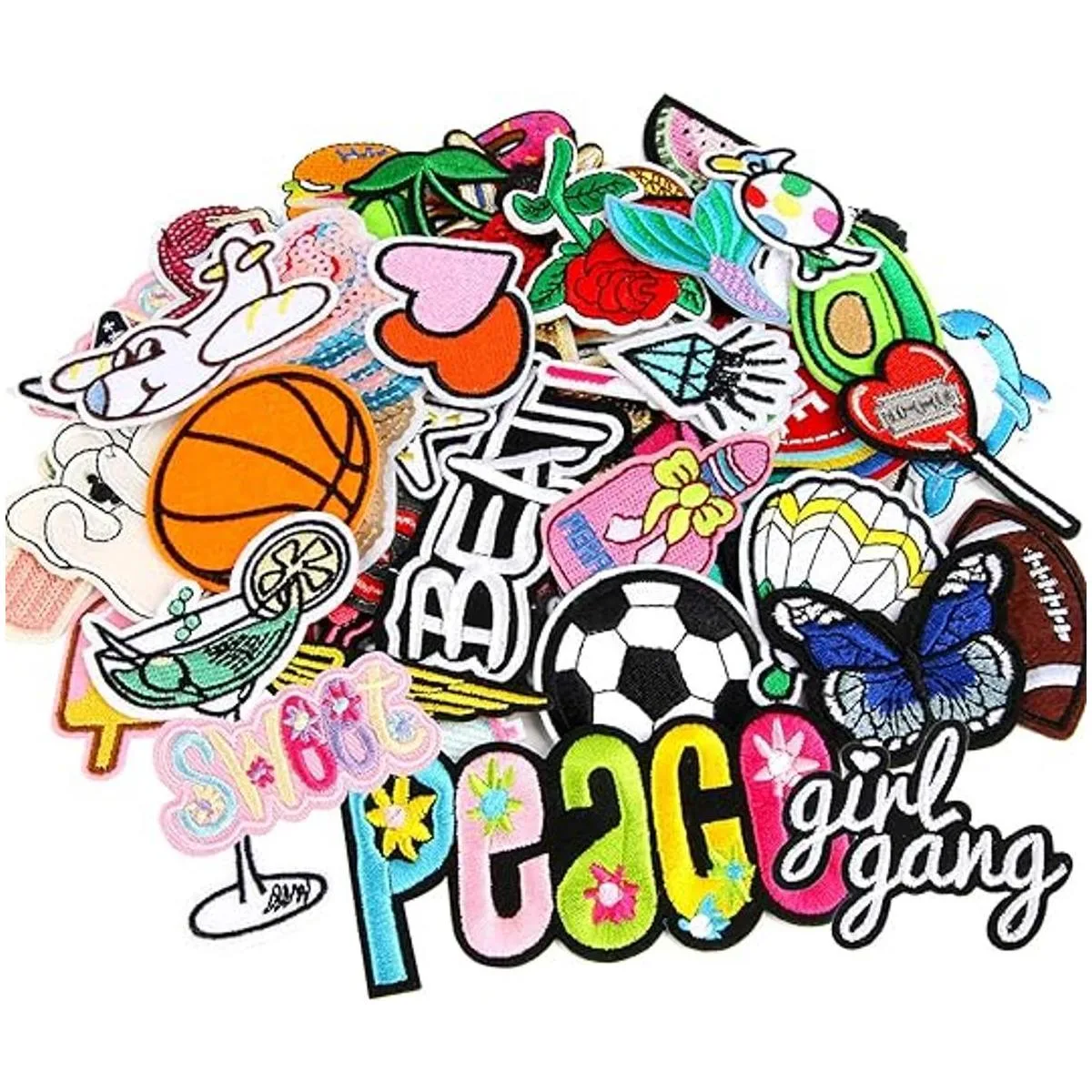 60 parches bordados al azar de varios estilos, parches bordados para planchar, parches de reparación de apliques de costura para plancharcoser en mochilas, pantalones, ropa, jeans, chaquetas, sombrero