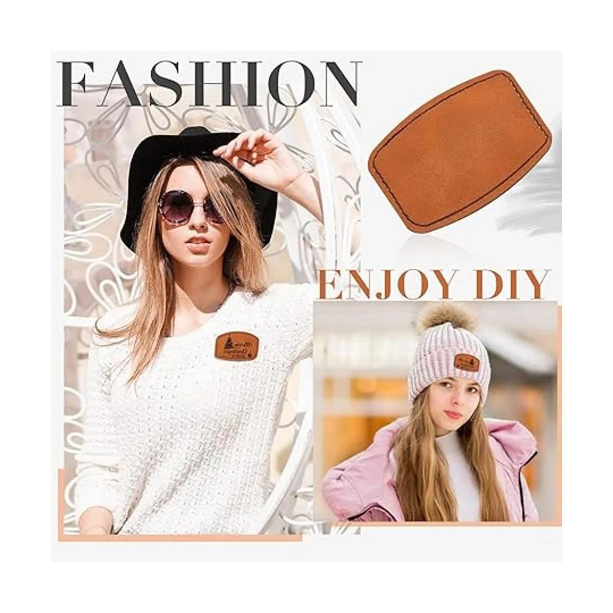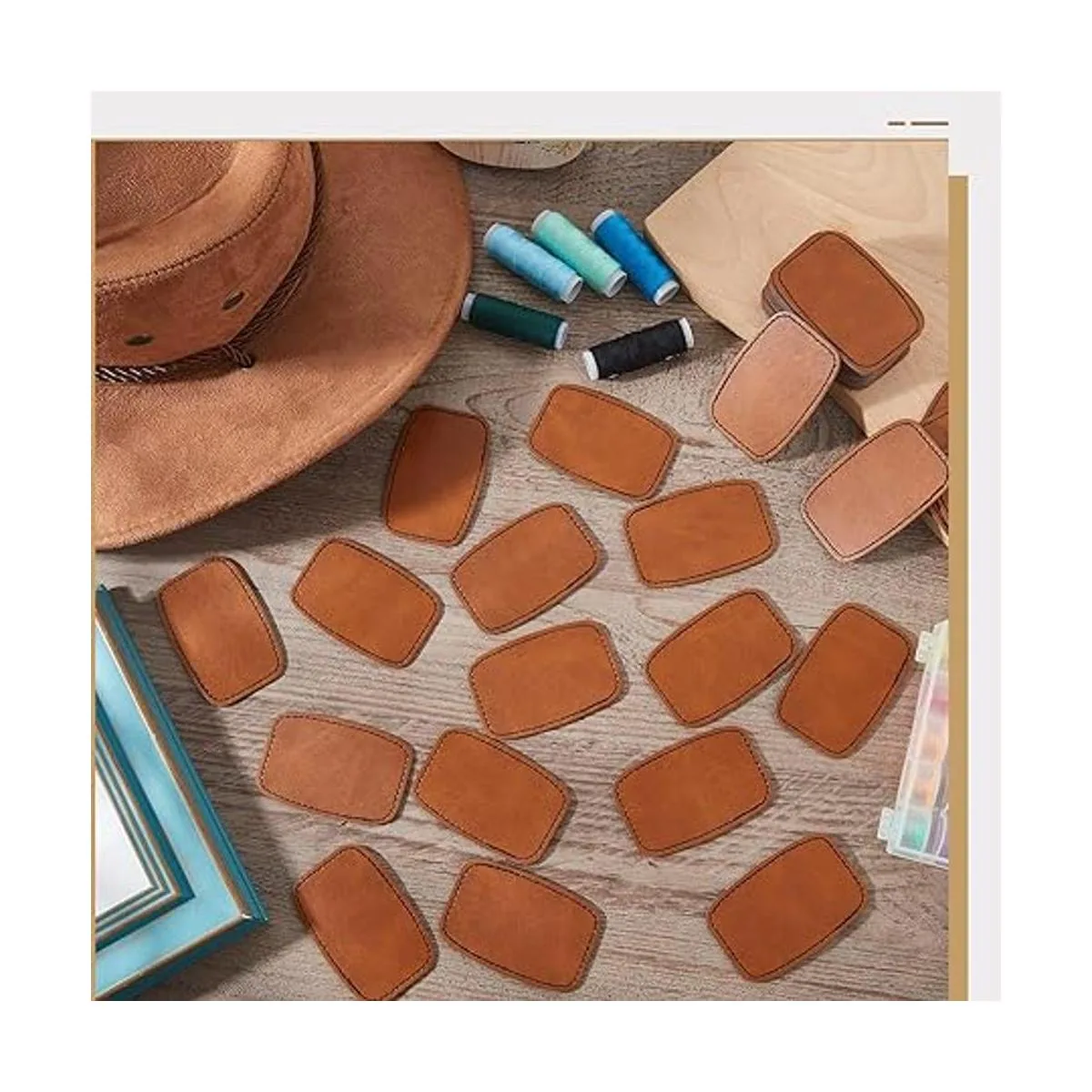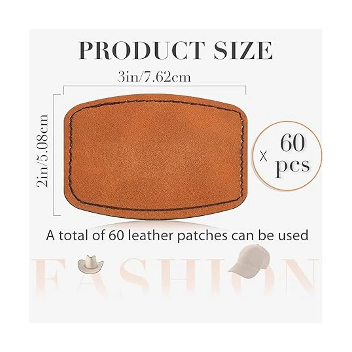 Adecuado para satisfacer tus necesidades: recibirás 60 parches rectangulares redondeados de piel sintética para sombreros en color caqui, miden aproximadamente 3.0 x 2.0 in, suficientes para satisfacer tu uso diario, compartir, decorar y reparar demandas