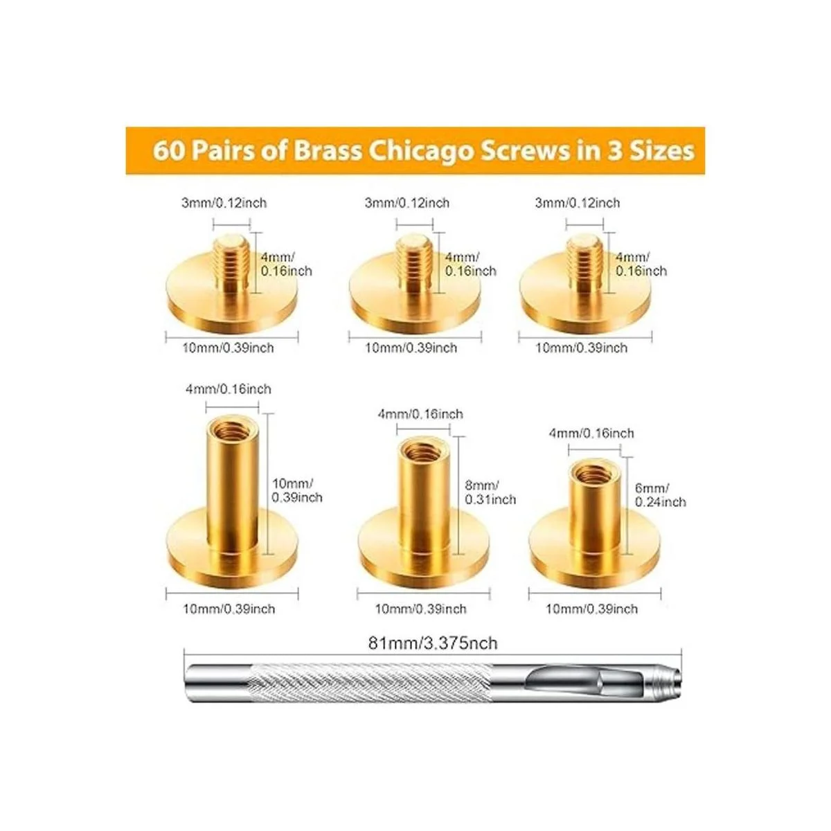 60 pares de 3 tamaños de latón Chicago tornillos de cuero