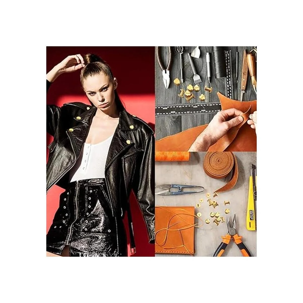 Brillante y suave: los remaches planos de cuero cuentan con un color de clase de oro, brillante en aspecto y superficie lisa, que son fáciles de combinar con tus diferentes artículos, añadiendo un toque de glamour a tu trabajo de manualidades