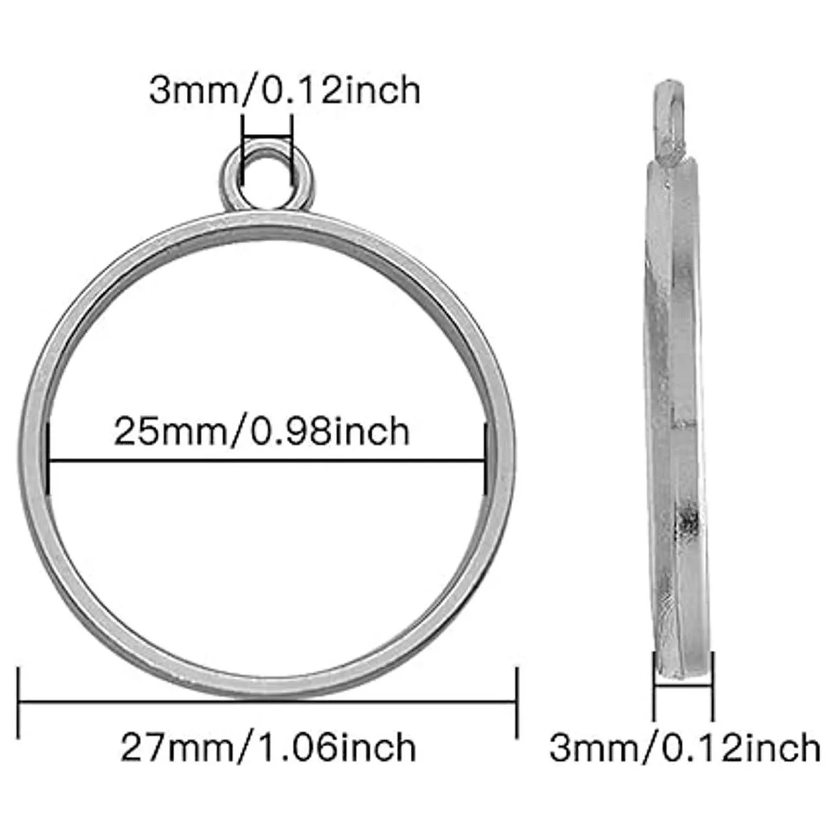 Tamaños adecuados: estos colgantes de marco abierto tienen un diámetro interior de 0.984 in, diámetro exterior: 1.063 in, grosor: 0.118 in. Tamaño del agujero: diámetro interior: 0.118 in.
