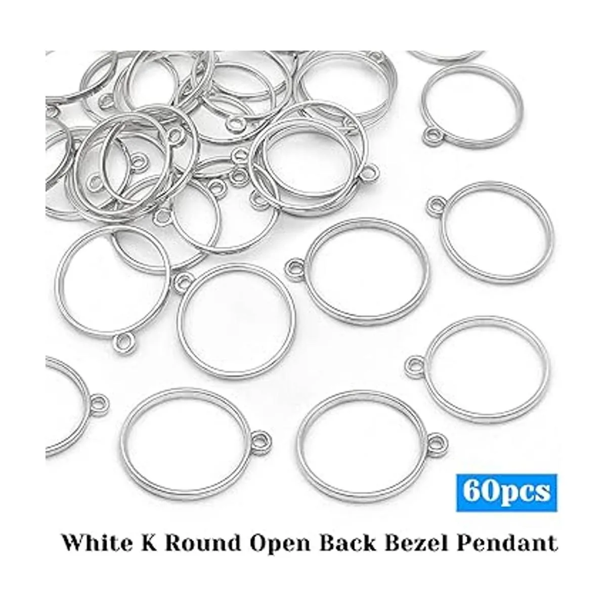 El paquete incluye: el kit incluye 60 colgantes de bisel trasero abierto en blanco K. Proporciona suficiente cantidad para que puedas hacer collares, que es muy adecuado para manualidades.