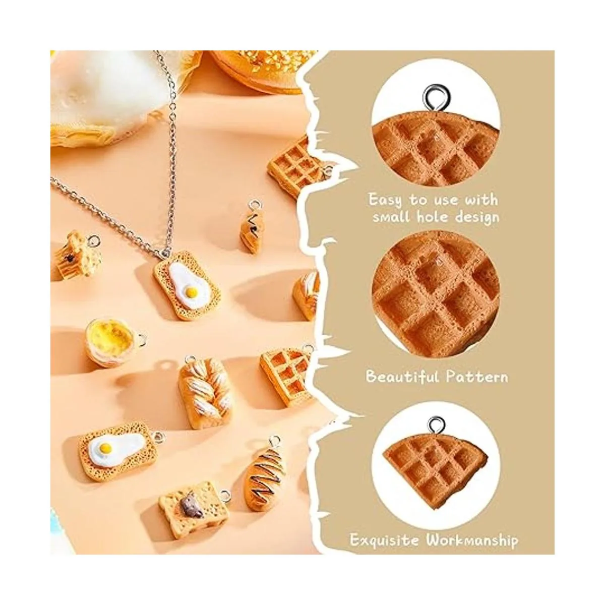 Exquisito para manualidades a mano: estos dijes de resina para hacer joyas están diseñados en tartas de huevo, gofres, forma de tostada, combinando con colores brillantes, parece que este juego de dijes de resina puede hacerte atrapar el olor del pan de la panadería, haciéndote sentir encantado