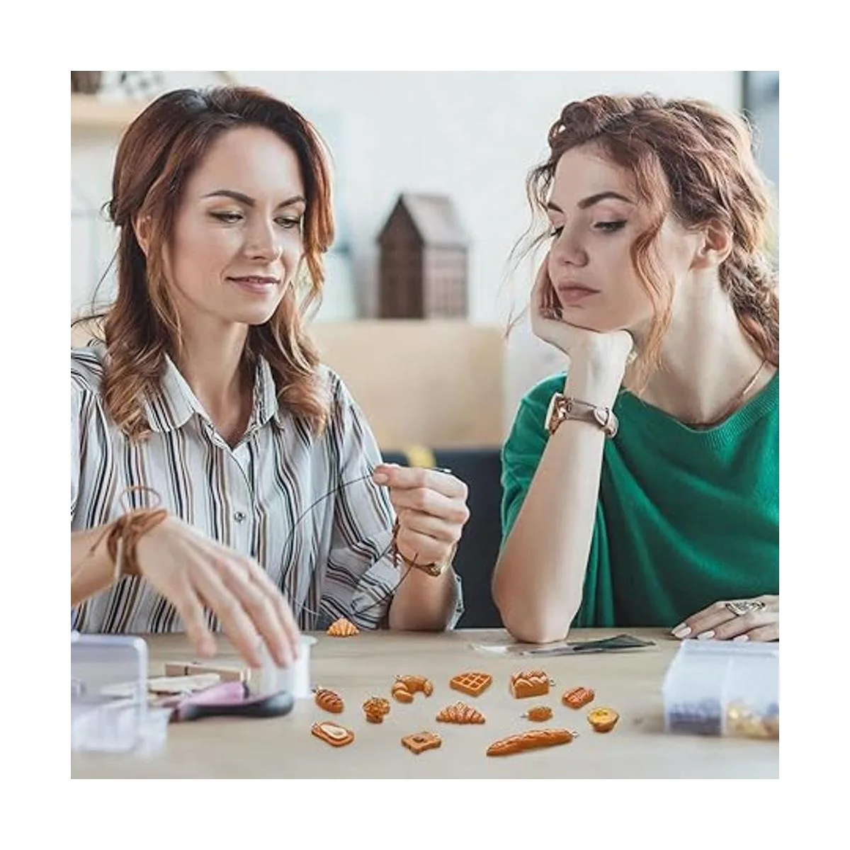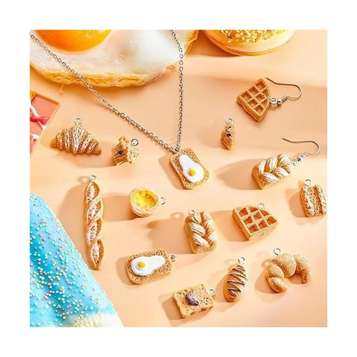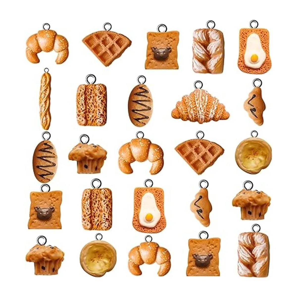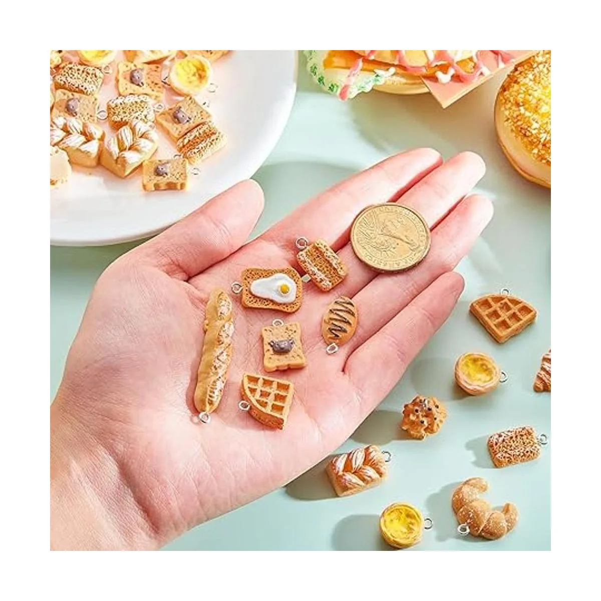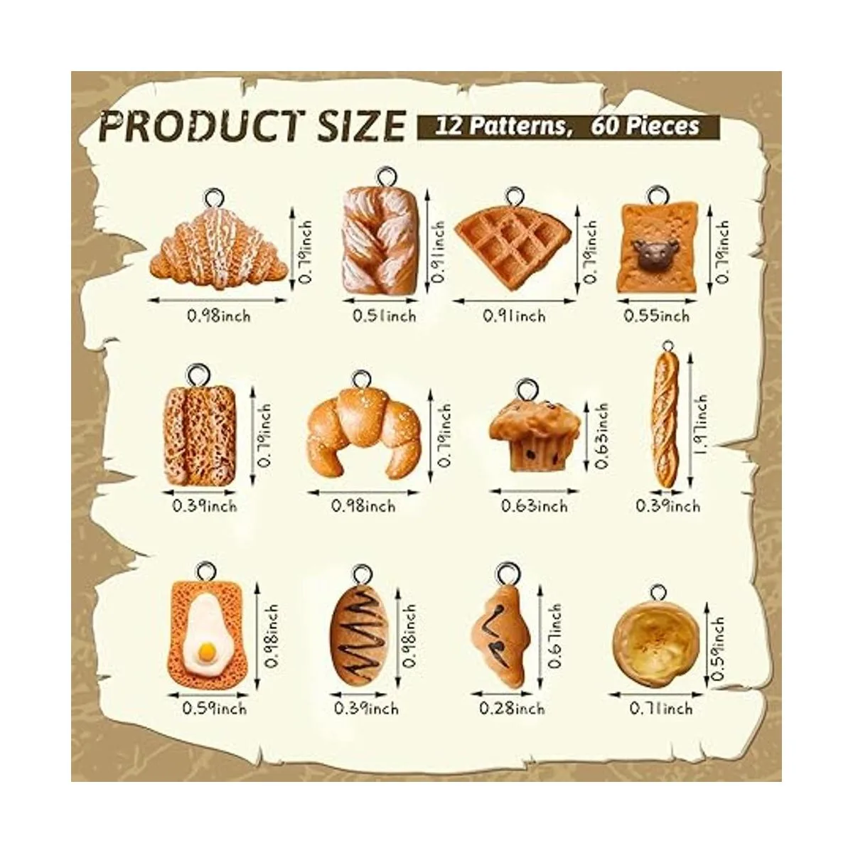60 piezas hechas a mano de simulación de pan tostado, dijes colgantes de comida para hacer aretes, dijes de resina de imitación para hacer joyas, collares, aretes, niños, niñas, manualidades