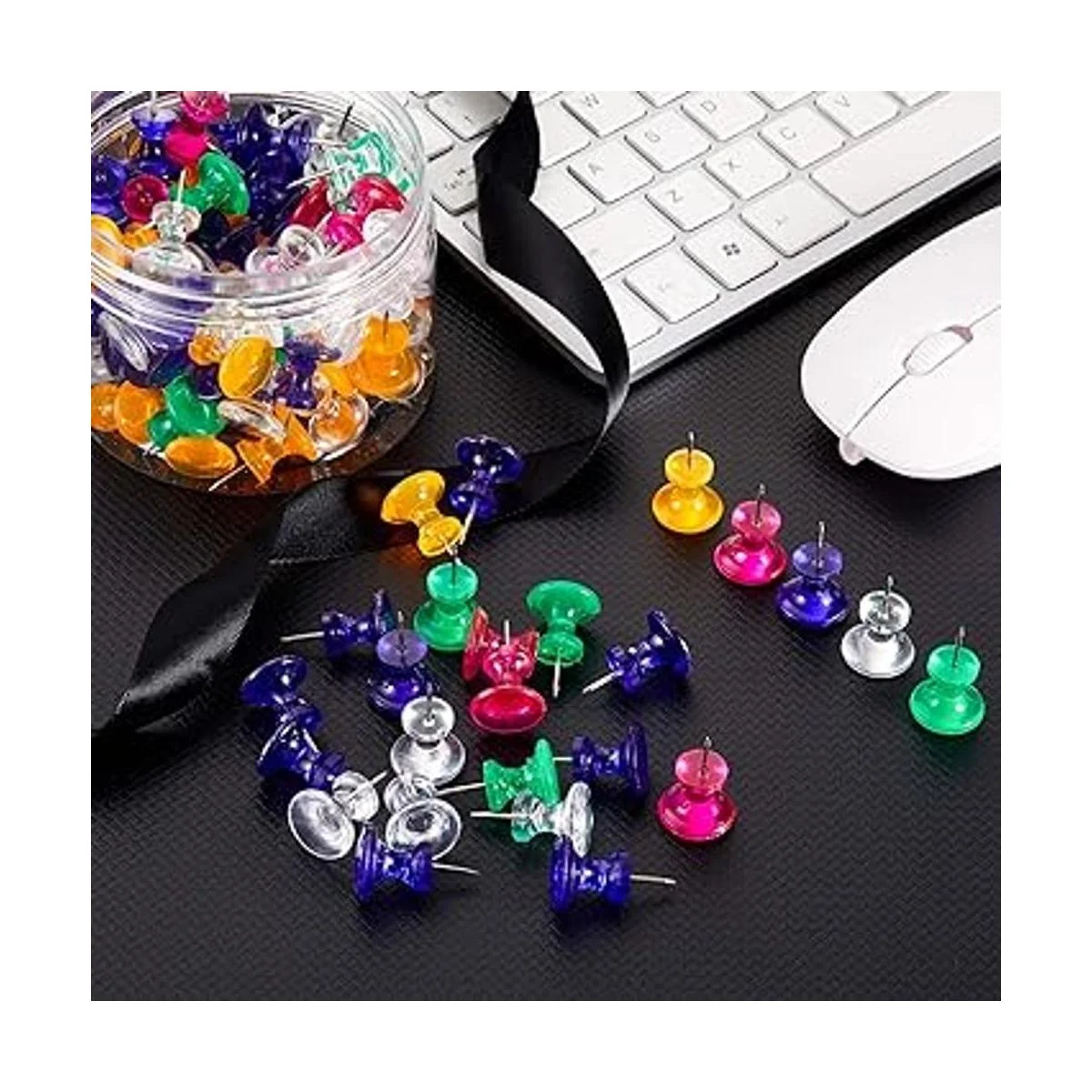 Múltiples usos: estas chinchetas se aplican ampliamente a papeles de pines, notas, mapas, fotos, carteles, notas, horarios de calendario y proyectos de bricolaje, etc. a tableros de corcho, tableros de anuncios