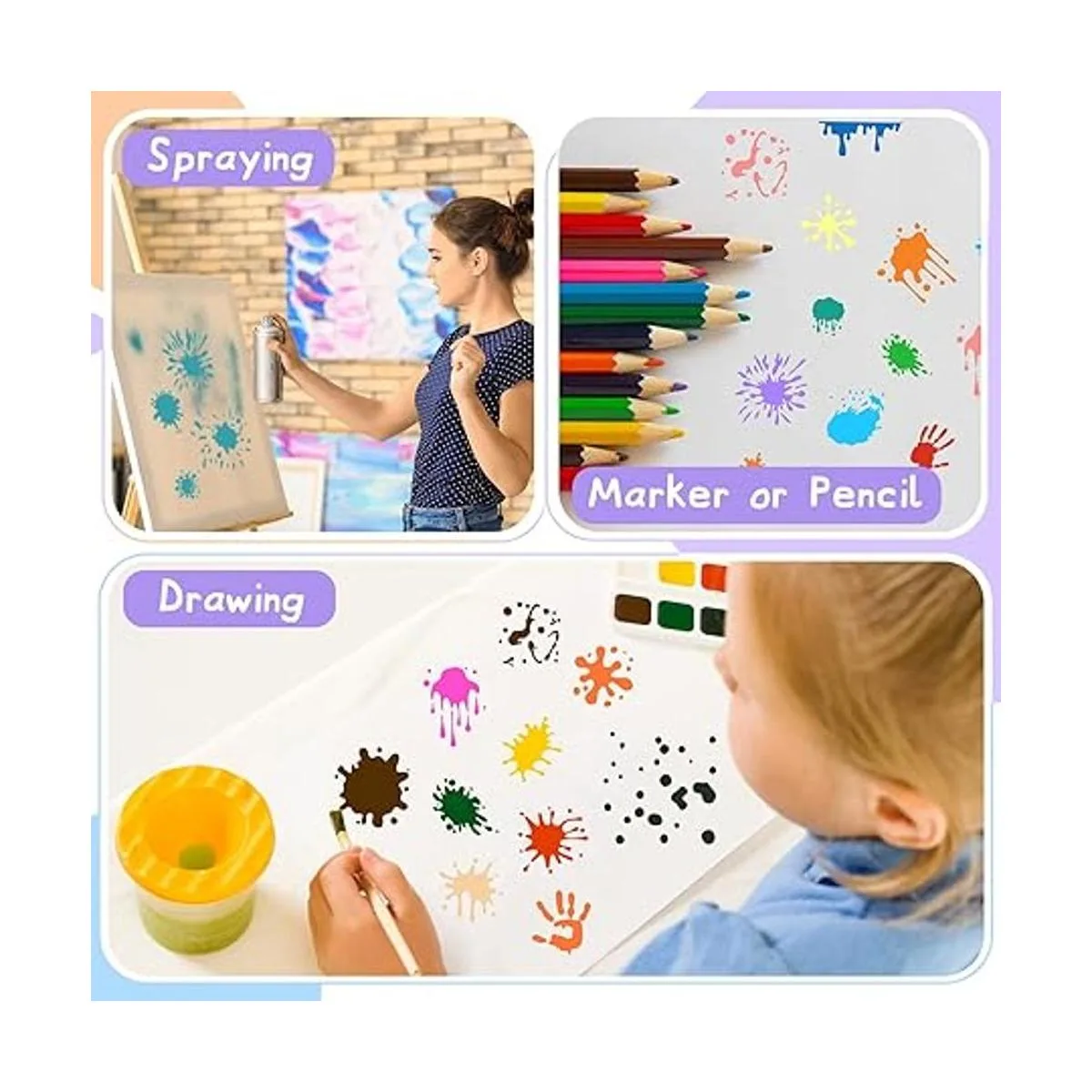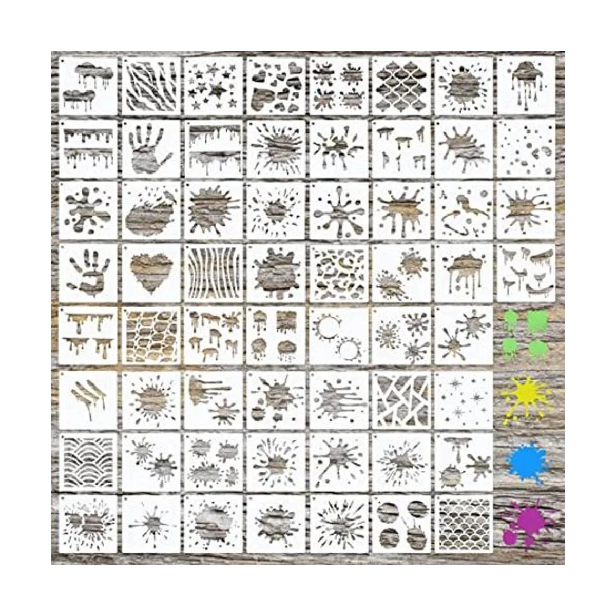 60 plantillas de manchas y salpicaduras para zapatos, plantillas de graffiti reutilizables, plantillas de pintura para pintar sobre lienzo, papel de madera, tela de plástico, azulejos de pared, 3 x 3 pulgadas