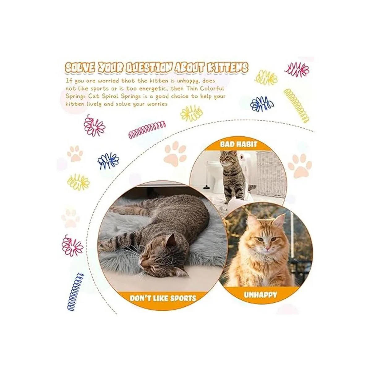 Información sobre el tamaño: cada resorte de juguete para gatos mide 3.0 x 0.4 in, relativamente más largo y más delgado para satisfacer mejor las necesidades de tus gatitos; los gatos pueden patear los muelles y perseguirlos sin esfuerzo con disfrute