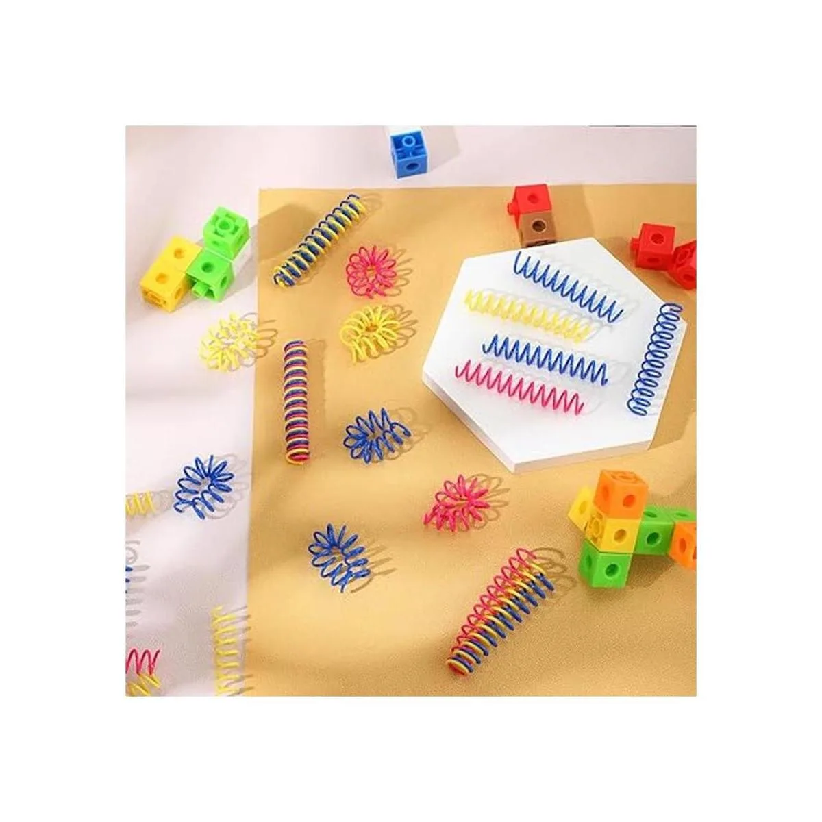60 resortes finos y coloridos para gatos, espirales, juguetes interactivos para gatos, juguetes para gatos, juguetes de plástico para gatos, para matar mordeduras, cazar, perseguir para mantenerse en forma activa, azul, amarillo, rosa, 3 pulgadas