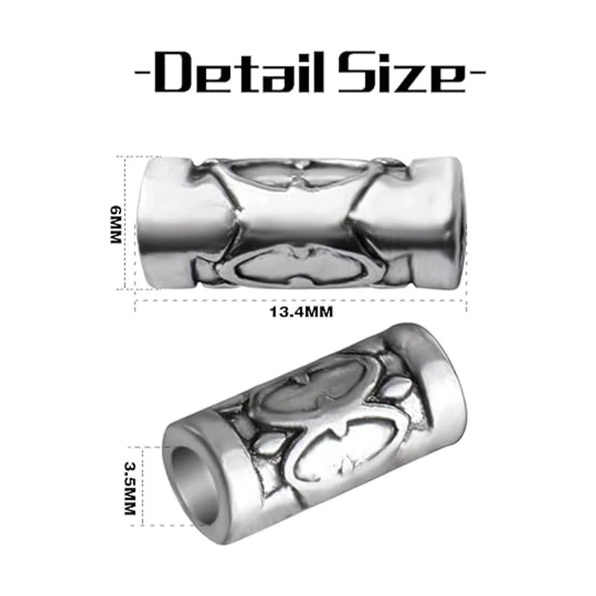 Tamaño adecuado: como se puede ver en la imagen, el tamaño es de 0.528 in de largo, 0.236 in de ancho, el diámetro del agujero es de 0.138 in. El agujero grande hace que sea fácil de enhebrar cadenas o cordones europeos.