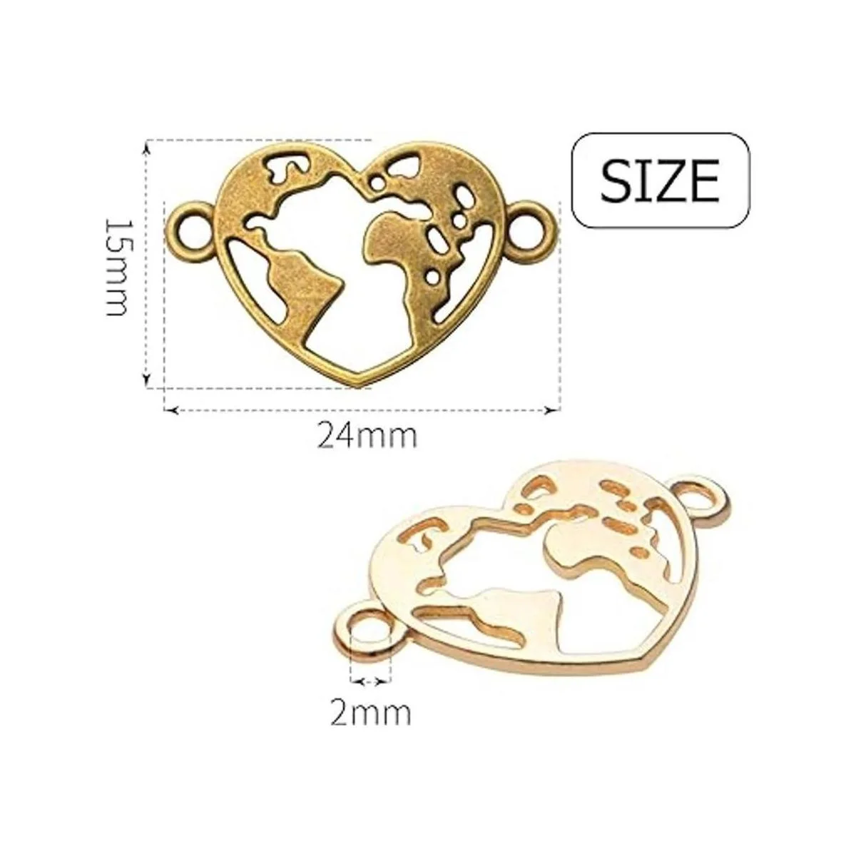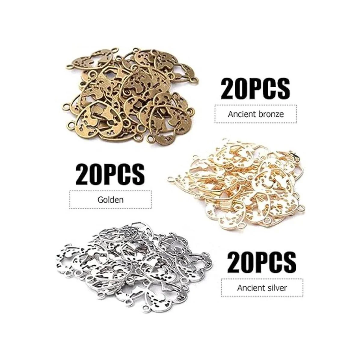 El paquete incluye: 60 abalorios con forma de corazón en total, 3 colores plata antigua, bronce antiguo y oro, 20 unidades de cada color. Tamaño: 0.945 x 0.591 x 0.079 in.
