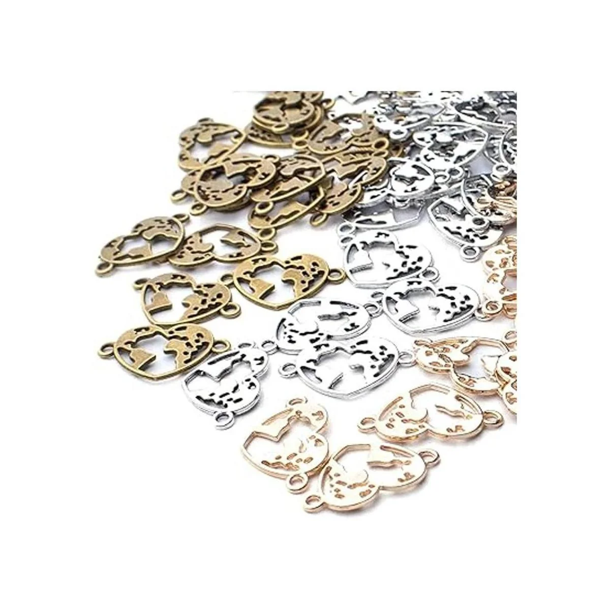 Los conectores de joyería se diseñan con la forma de corazón hueco, con aspecto antiguo, puedes utilizar los abalorios para hacer tu propia joyería de moda.