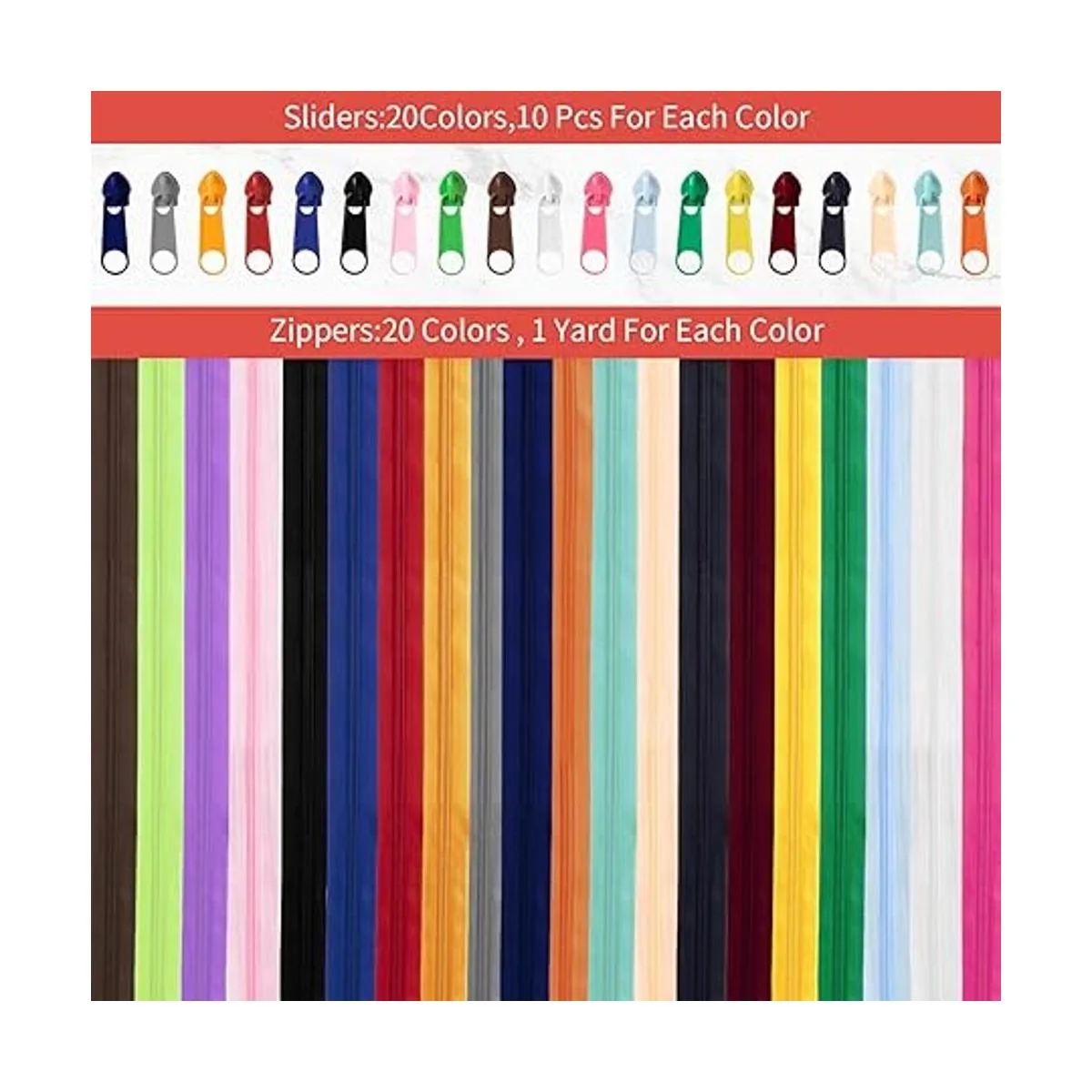 60 yardas, 20 cremalleras de costura 5, cremalleras de nailon surtidas para coser con 200 deslizadores de cremallera para manualidades, suministros de costura a medida, 20 colores