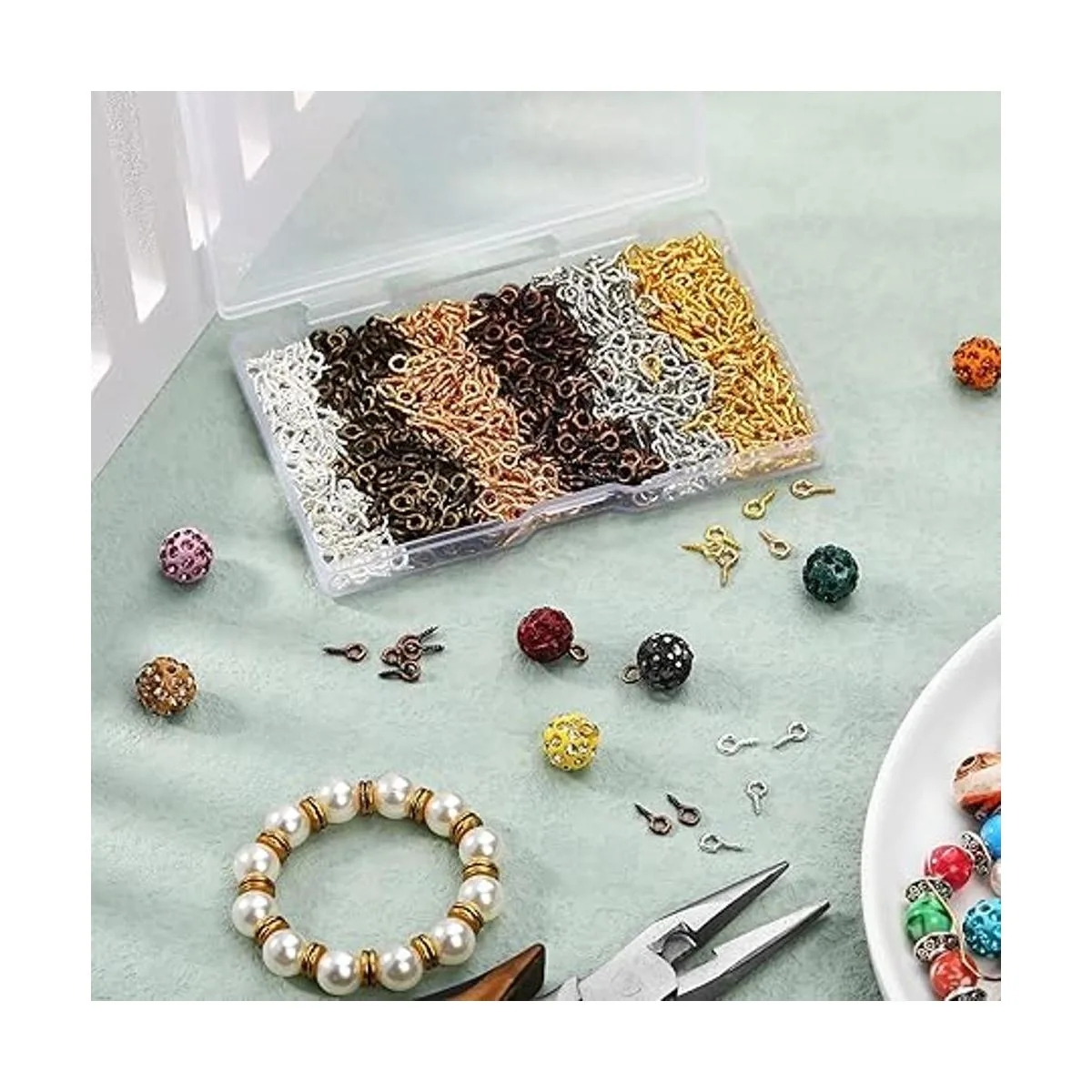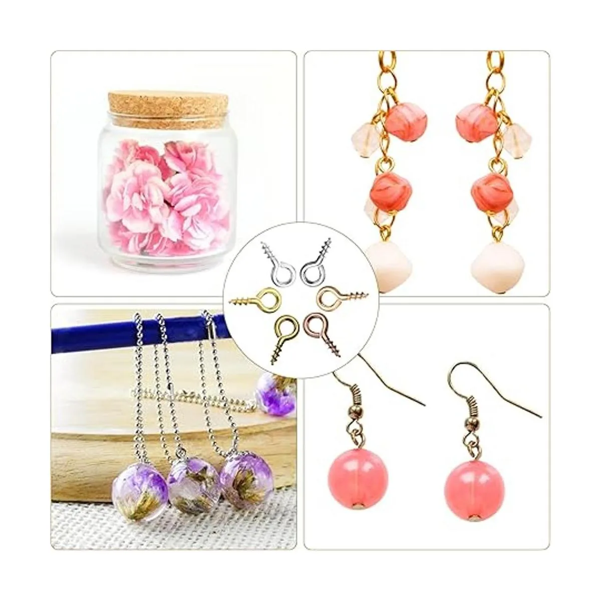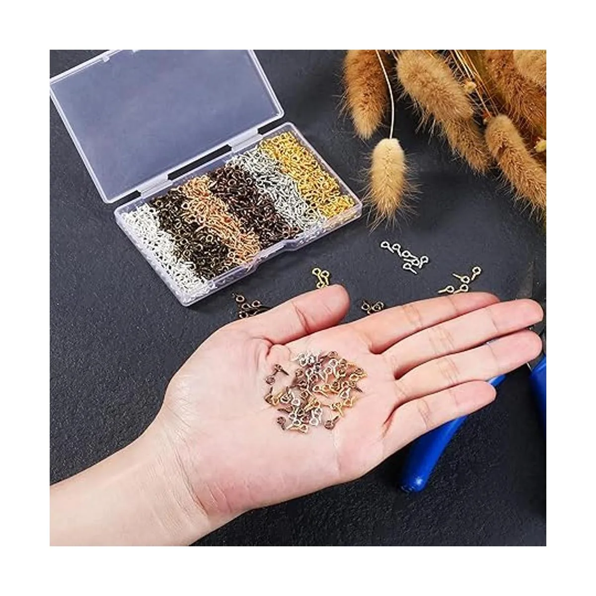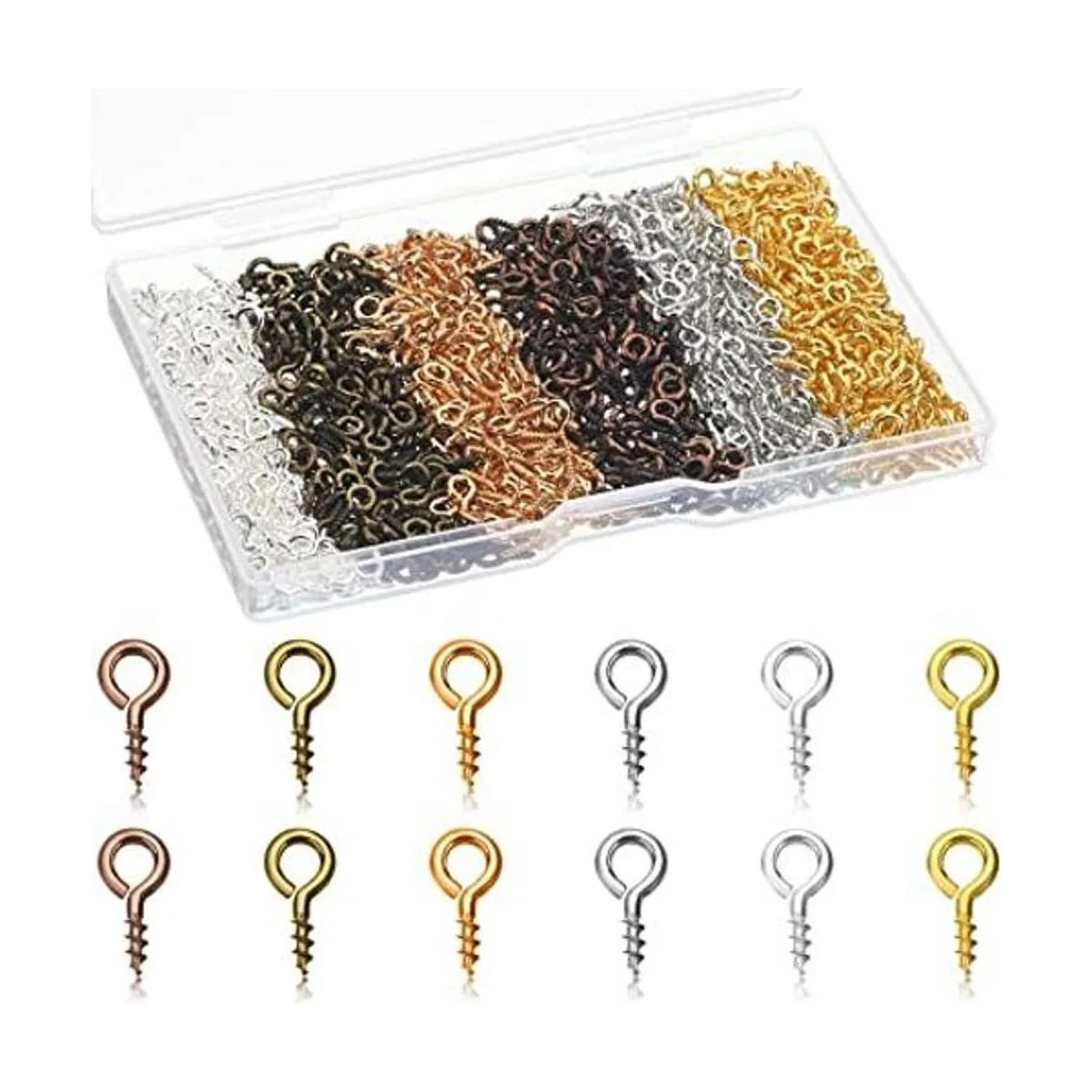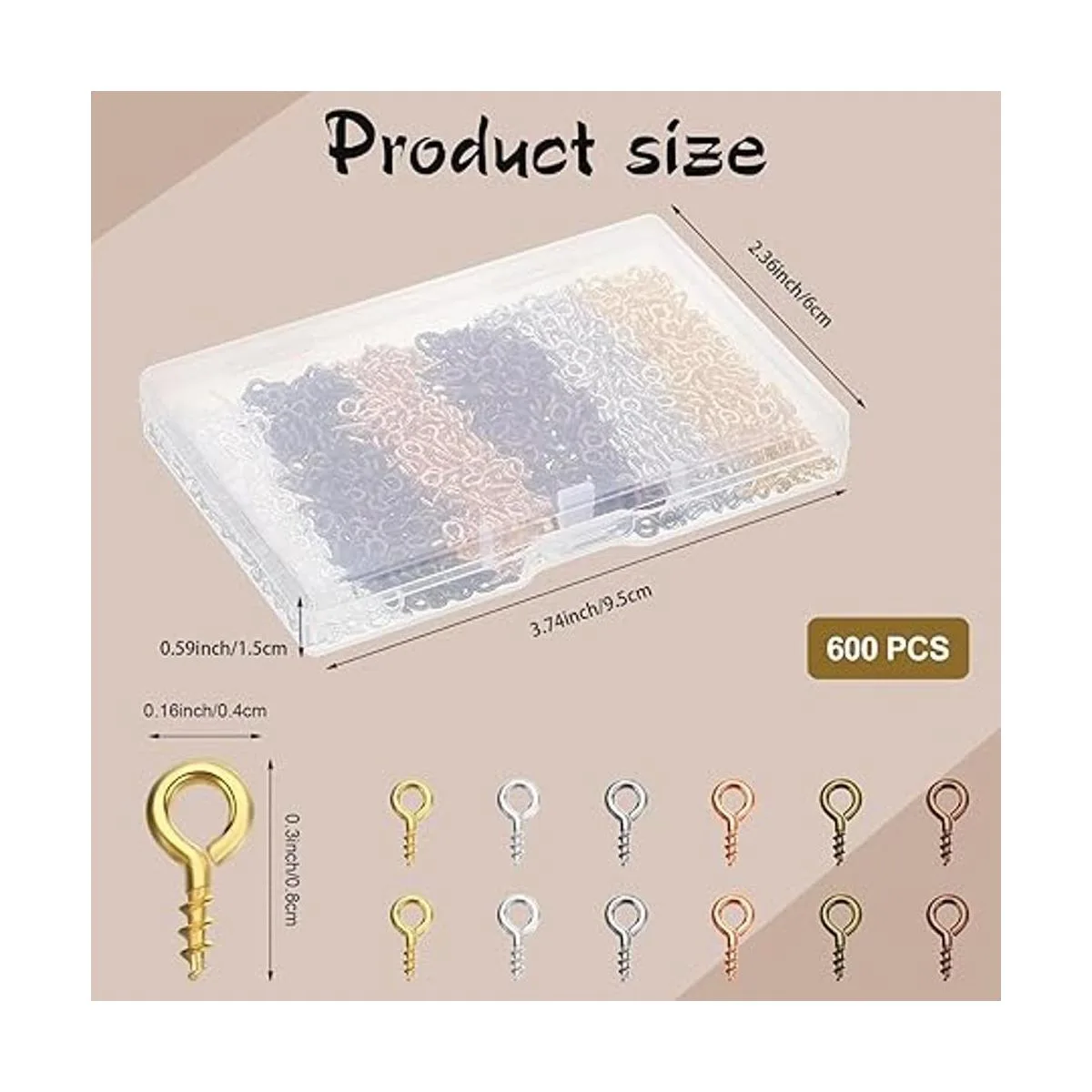 600 ganchos de tornillo de ojo de 6 colores, pequeños tornillos de ojal, tornillos de metal para ojal, mini tornillo, clavija, tornillo autorroscante, ganchos de ojo para hacer joyas, manualidades de bricolaje 0.157 x 0.315 in