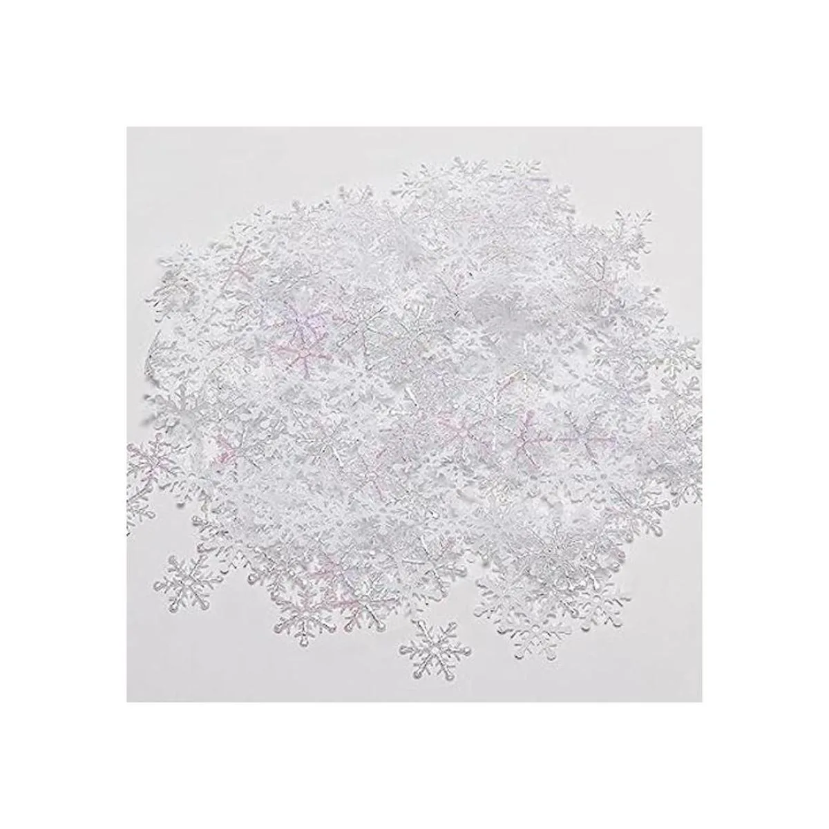 Lo que obtendrás: 2 confeti de copos de nieve blancos, un paquete de 300 copos de nieve, en total 600 hermosos copos de nieve. Decoraciones de copo de nieve de invierno de alta calidad, se pueden reutilizar.