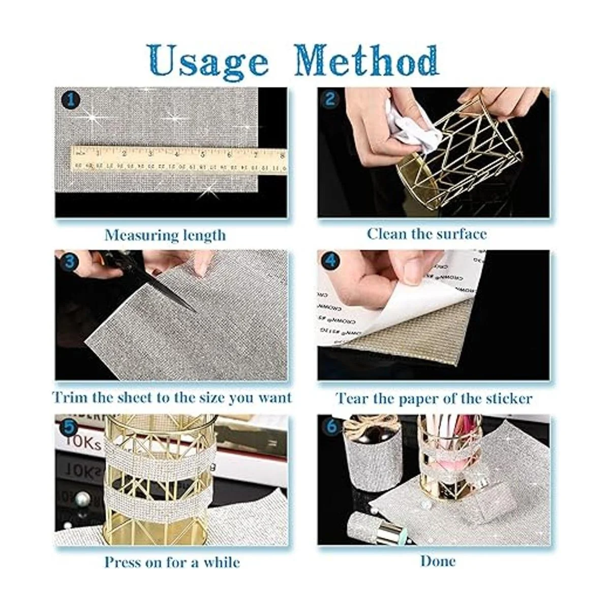 Fácil de usar: las calcomanías de diamantes de imitación de cristal brillante se pueden cortar en cualquier forma o longitud como quieras, simplemente retira el papel posterior de la calcomanía y presiona en la superficie que desees