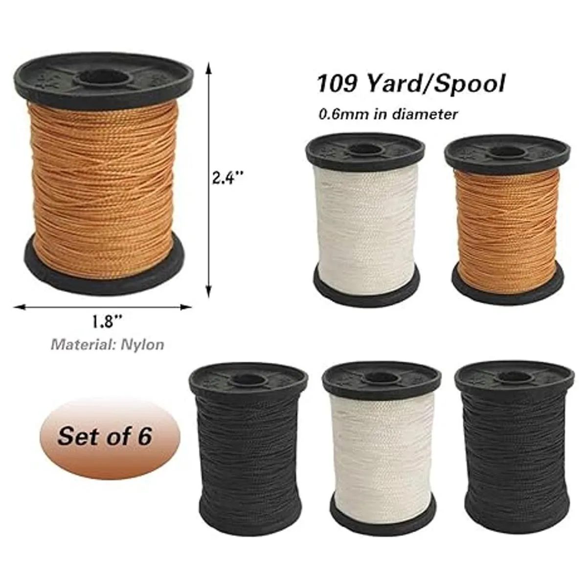 656 yardas de hilo de tapicería resistente para reparación de costura de cuero de lona, DIY Craft, cuerda de nailon de 0.024 in, extra fuerte, 109 yardascarrete negro, blanco, marrón Juego de 6