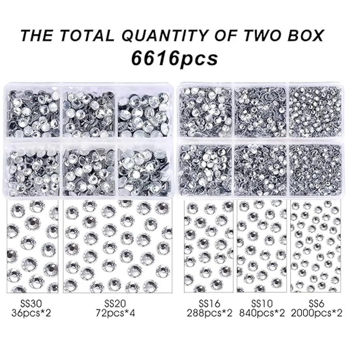 6616 diamantes de imitación termoadhesivos transparentes de cristal para ropa, camisas, parte trasera plana con pinzas y bolígrafo de recolección SS6SS30