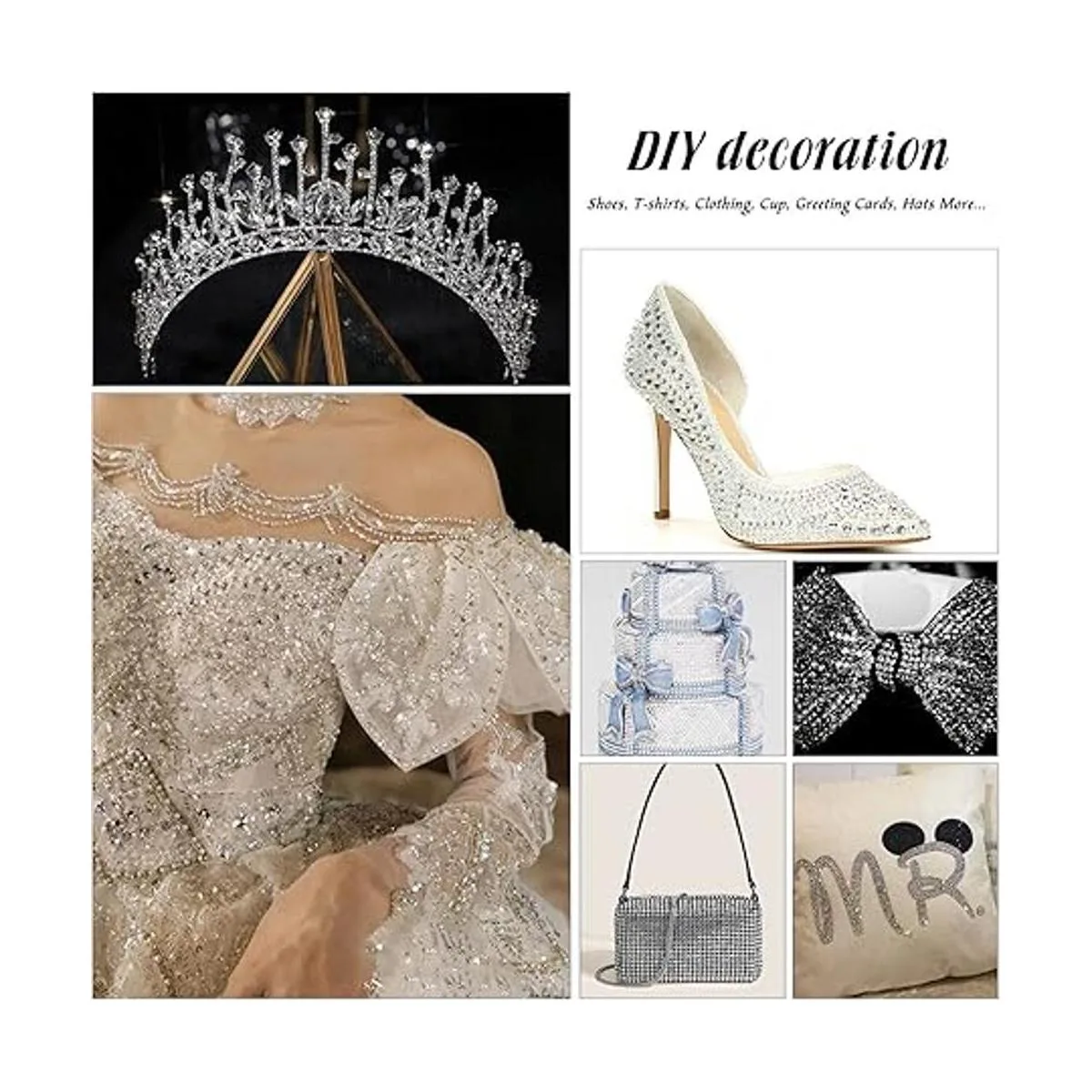 Utiliza pinzas y recogedor de gemas para recoger diamantes de imitación, aplicador Hotfix o plancha doméstica, máquina de prensa de calor para reparación de calor y fijación, después de que el pegamento activado por calor se derrita, pega en el objeto y presiona ligeramente los diamantes de imitación durante unos 5 segundos. También se puede pegar con pegamento E6000.