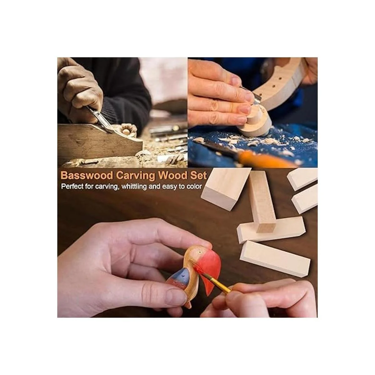 Satisface tus diferentes necesidades El paquete tiene 7 piezas de madera de tilo para tallar, incluyendo 1 pieza de 4 x 2 x 2 pulgadas y 6 bloques de madera de tilo de 4 x 1 pulgadas. Hay una gran opción no solo para principiantes, sino también para talladores de madera profesionales