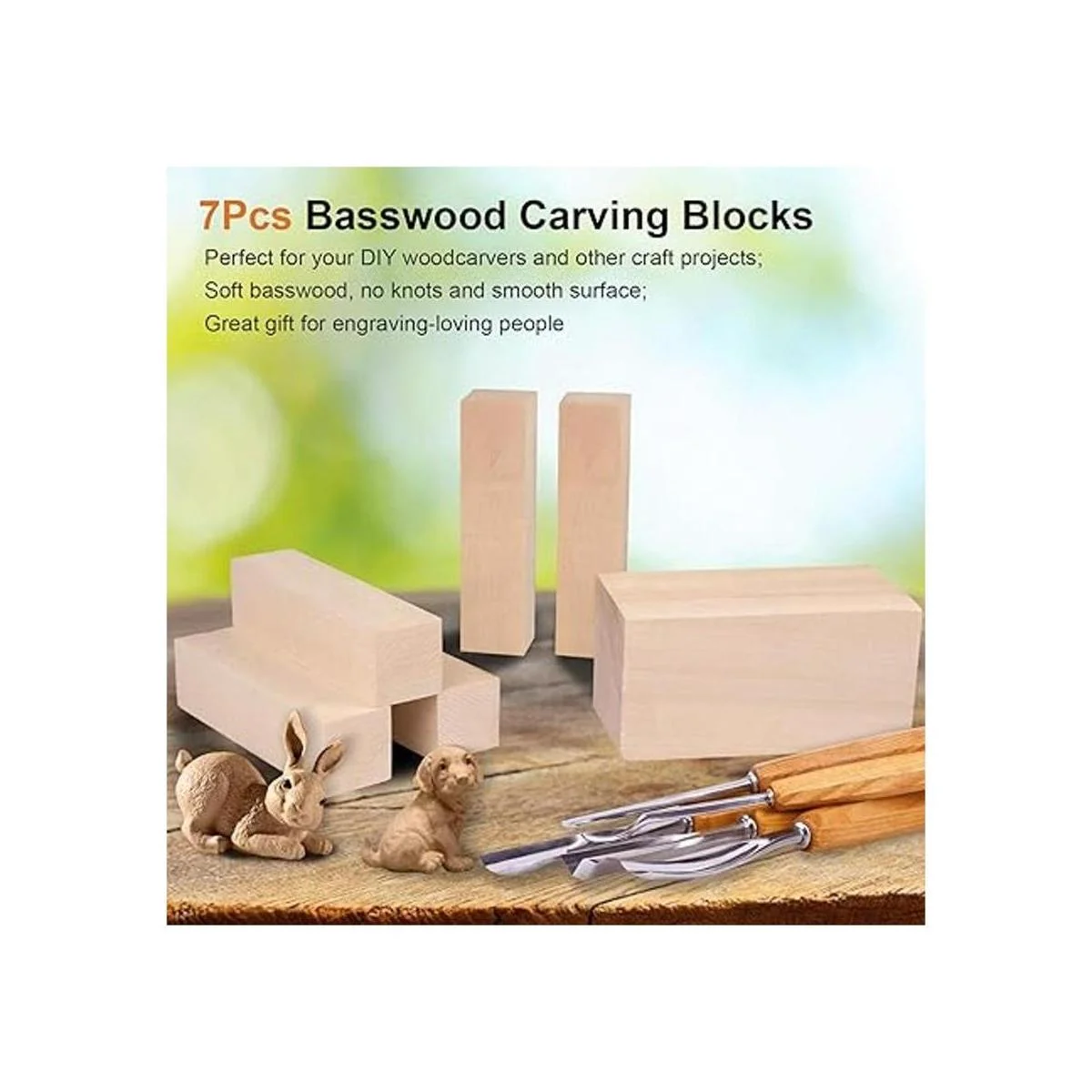 7 bloques de tallado de tilo de tilo, bloques de sillo para manualidades, madera de tilo para principiantes a expertos