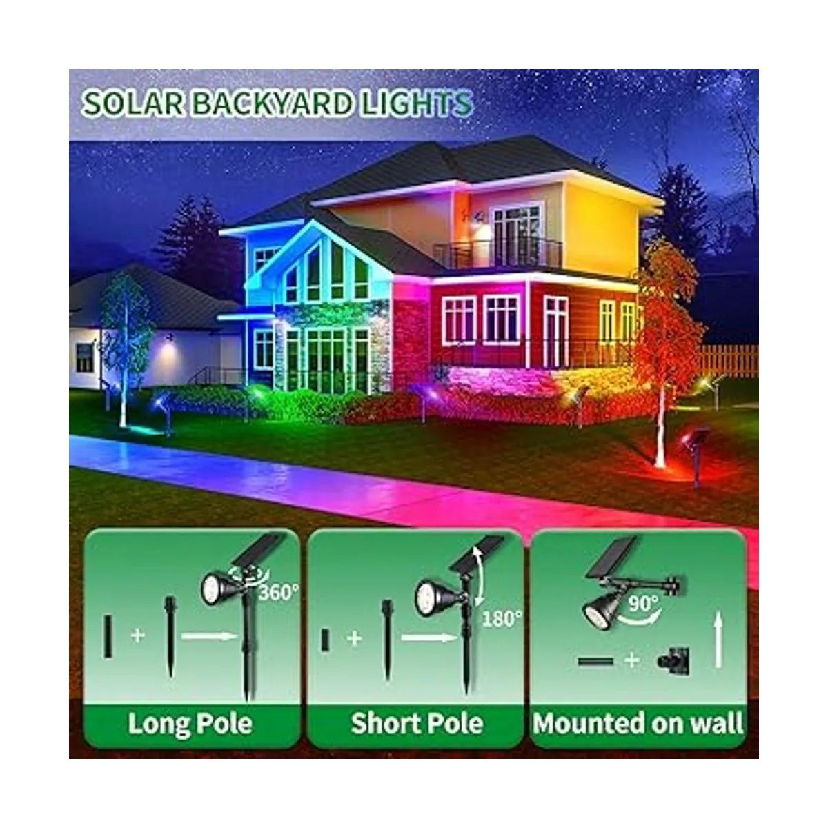 7 luces solares que cambian de color, 18 LED para exteriores, foco solar de paisaje, impermeable, 2 en 1, lámpara de pared de seguridad RGB para jardín, camino, patio, entrada, árboles, banderas, decoración de vacaciones, paquete de 4