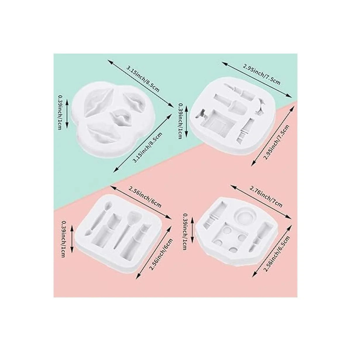 Juego de moldes de silicona con temática de maquillaje: el paquete contiene 7 moldes de silicona de maquillaje en 7 estilos diferentes, incluyendo 3 piezas de formas temáticas de maquillaje, 2 piezas de formas de labios, 1 pieza de forma de bolso y 1 pieza de forma de tacón alto, varios tamaños y formas se proporcionan para satisfacer diferentes necesidades; estos suministros de resina para tartas de chocolate y cupcakes te ayudarán a dar una sensación elegante a tu decoración de tarta o cupcakes