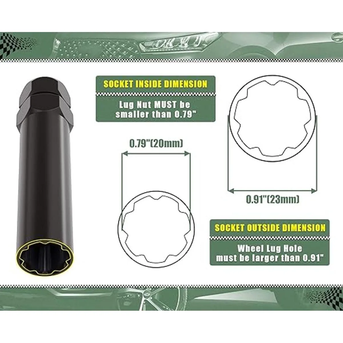 7 tuercas estriadas afinador de llave de llave herramienta para llave con llave hexagonal de 1316 pulgadas 0.827 in y 78 pulgadas 0.866 in, reemplazo hexagonal de 14 x 1.5, 14 x 2 916, bloqueo de tuerca de rueda negro de 0.787 in de diámetro interior