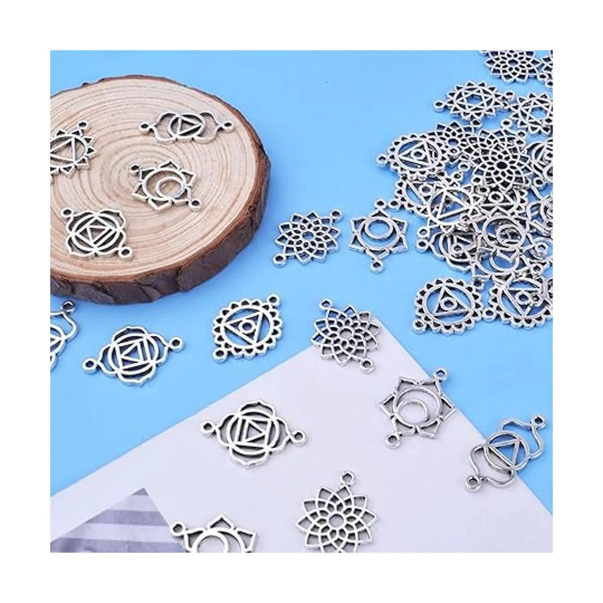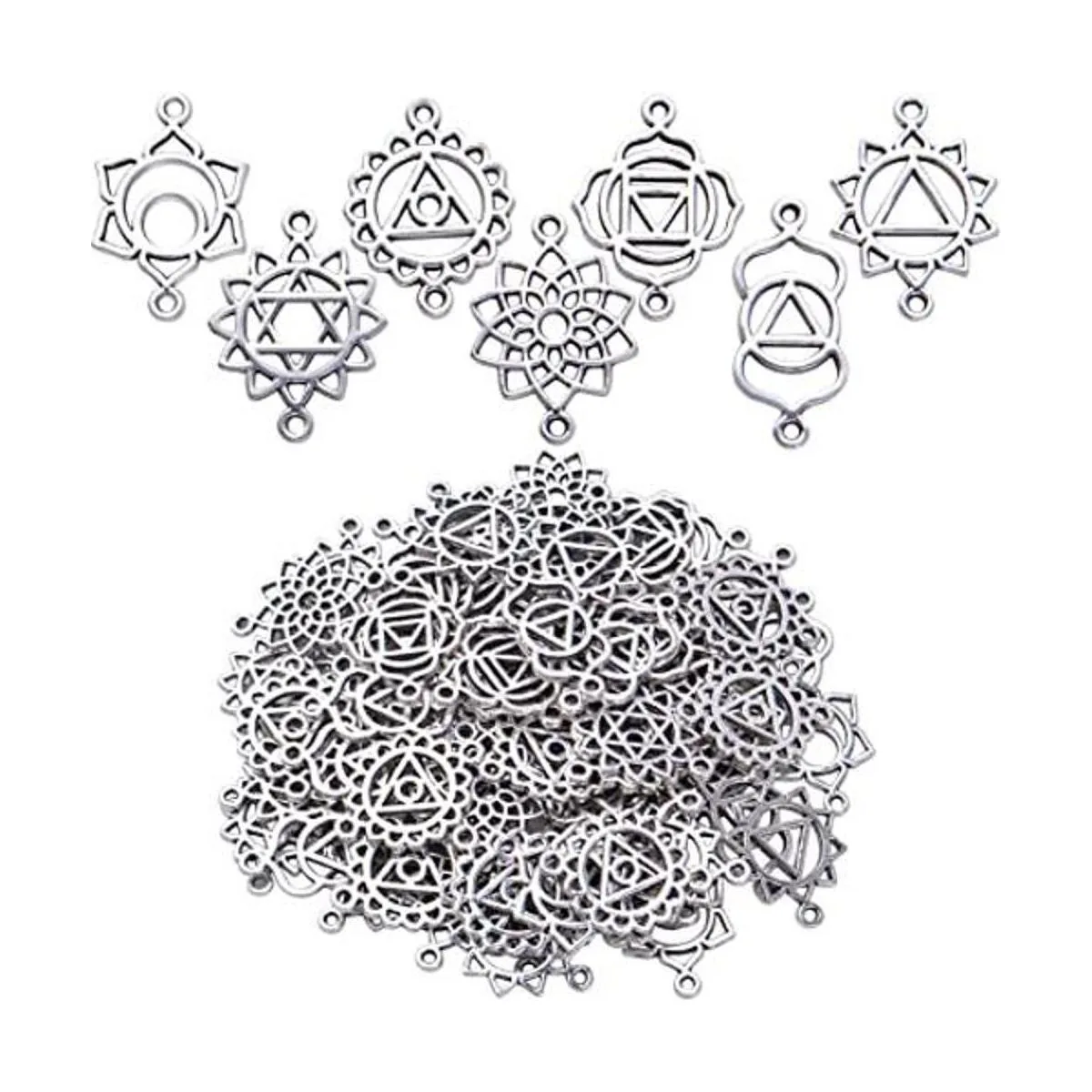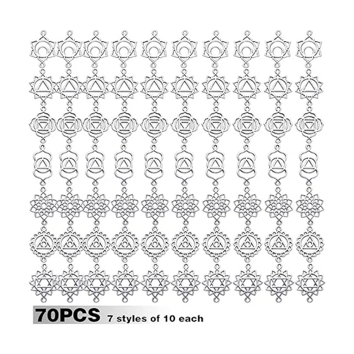 70 colgantes de plata envejecida con chakras y energía de aleación tibetana hueca de flores chakras, suministros de manualidades para hacer pulseras, collares, aretes, accesorios para hacer joyas, 7 estilos