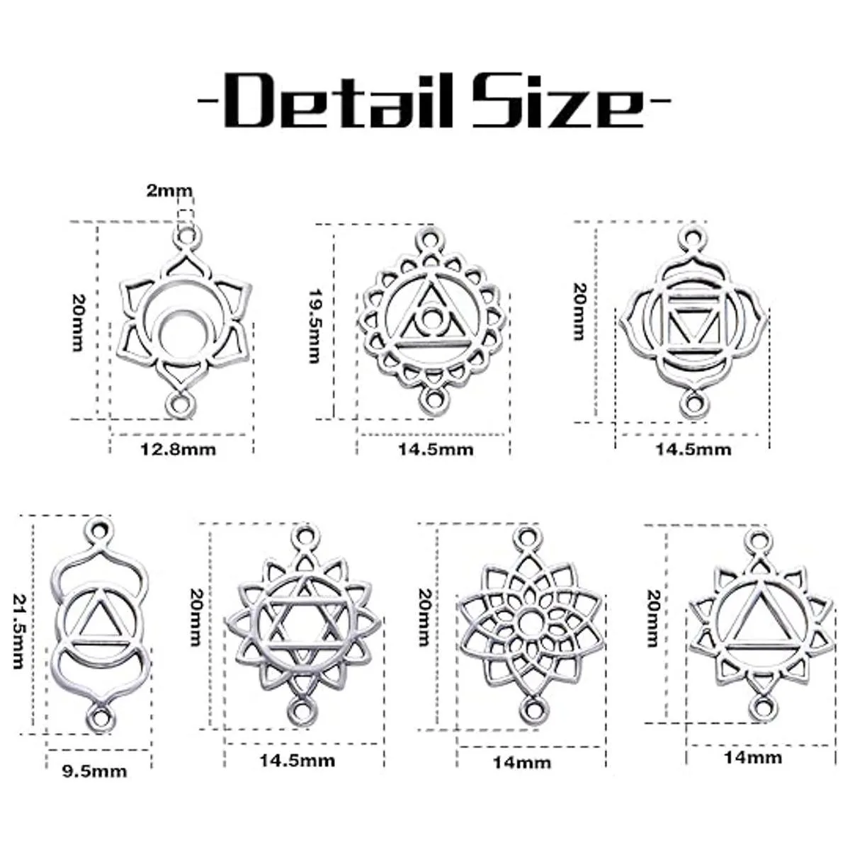 Cantidad suficiente: el paquete viene con 70 conectores de plata envejecida de chakra de energía en total, 7 estilos, 10 piezas para cada estilo. La cantidad suficiente satisfará tus diversas necesidades de fabricación de joyas