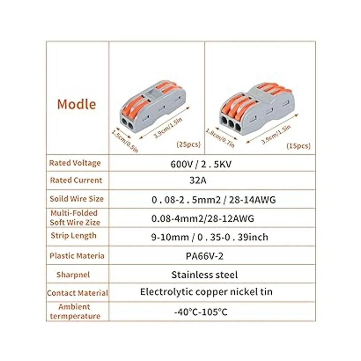 El paquete incluye: 70 piezas en total, incluye: 25 SPL2, 15 SPL3, 15 soportes y 15 tornillos y cantidad suficiente para satisfacer tus necesidades de conectores de cableado.